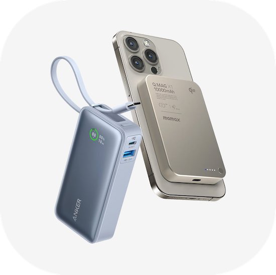 بطارية لاسلكية من Momax / سعة 10 الاف mAh / شحن لاسلكي 25 واط + مدخل تايب سي 30 واط / تيتانيوم