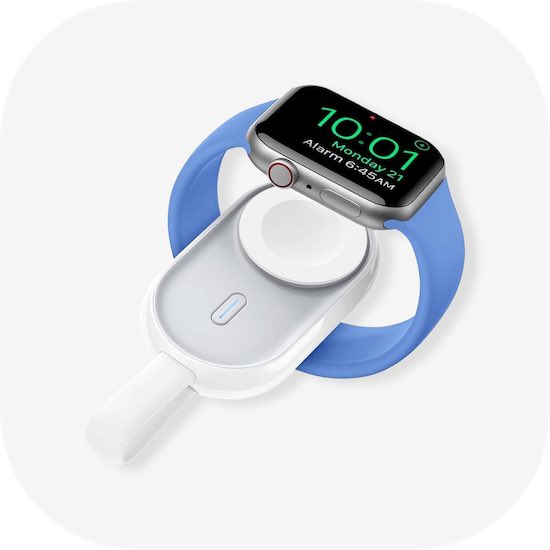 بطارية من Momax / سعة 5 الاف mAh / تشحن ساعة ابل / مع مدخل + واير تايب سي مدمج / حجم ميني / ابيض