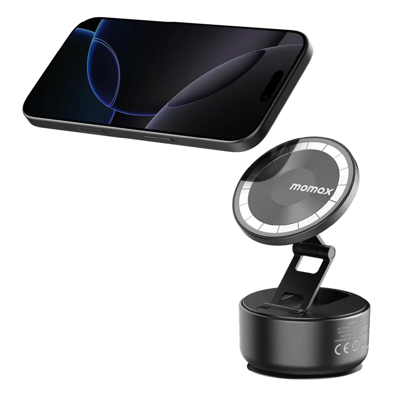 ستاند Q.Mag اللاسلكي للجوال من Momax / يثبت على طبلون السيارة / يدعم MagSafe /يشحن بقوة 15 واط