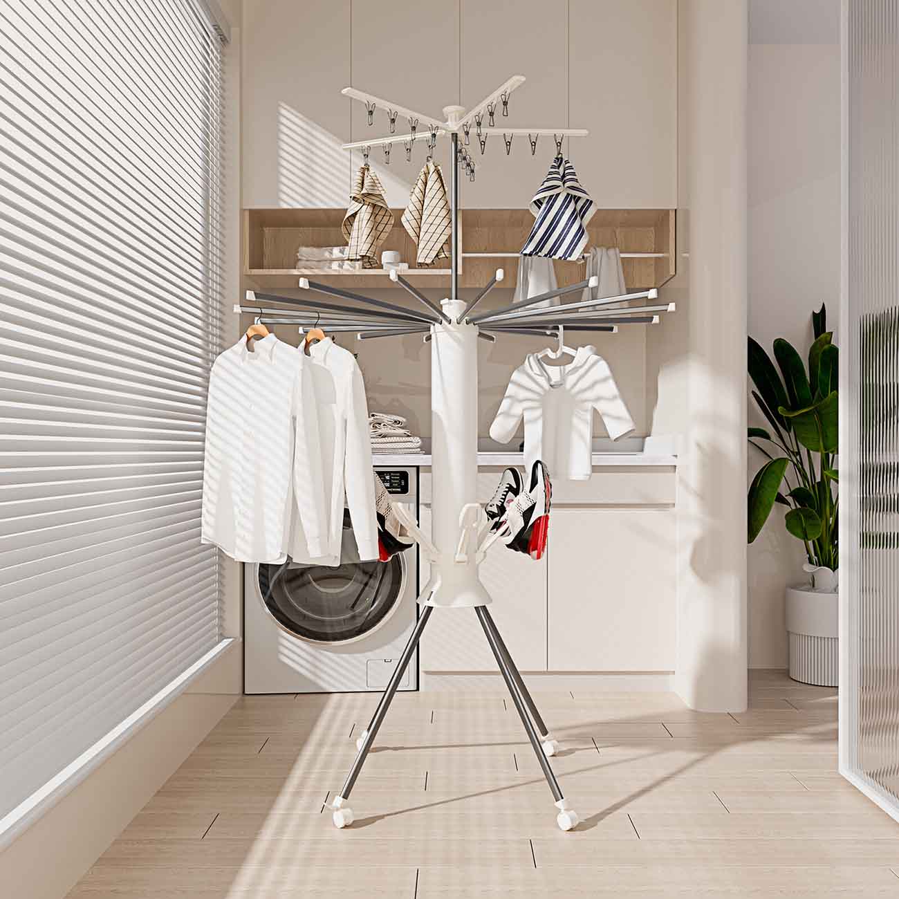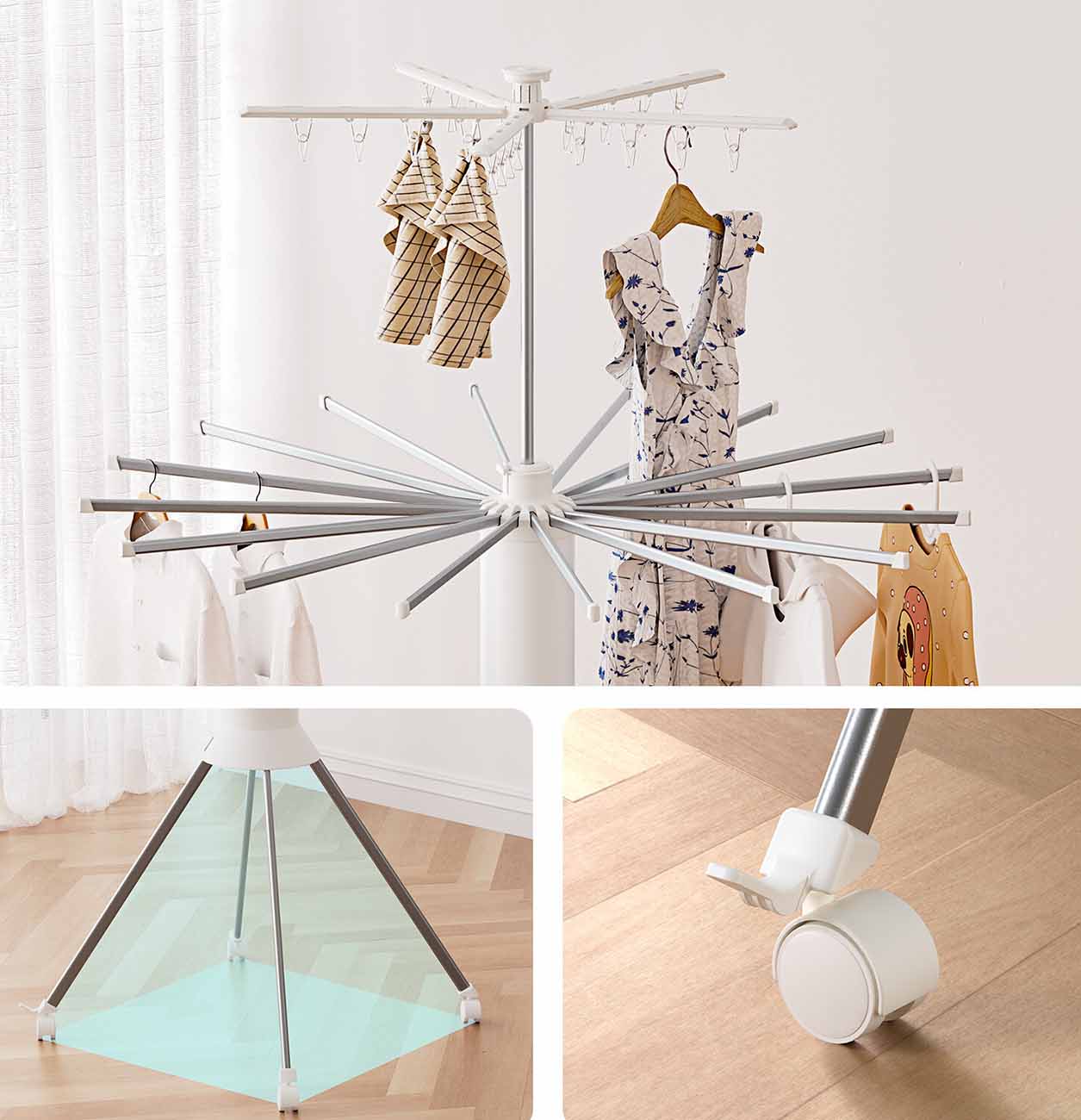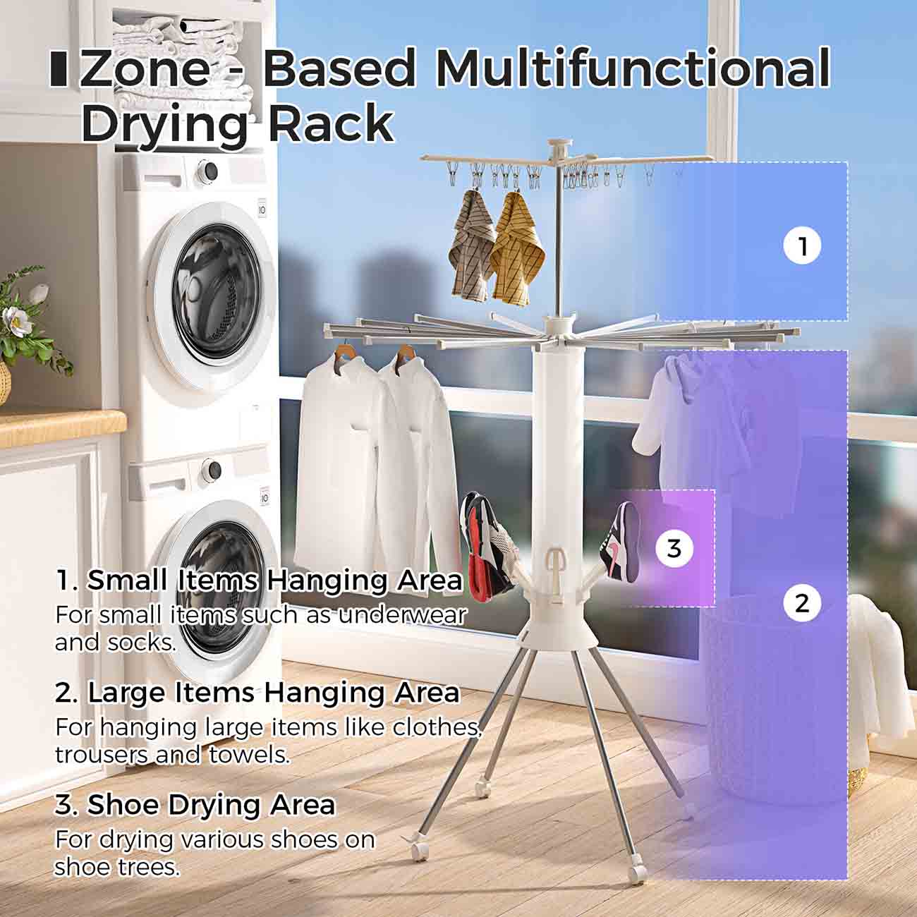 مصمم من ثلاث طبقات لتجفيف الملابس.