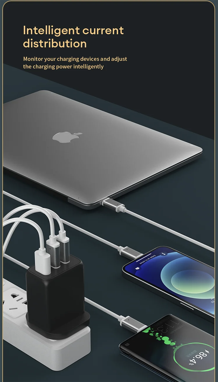 يشحن لك 3 اجهزة في نفس الوقت .. وكل جهاز يشحن مع سرعة كاملة.