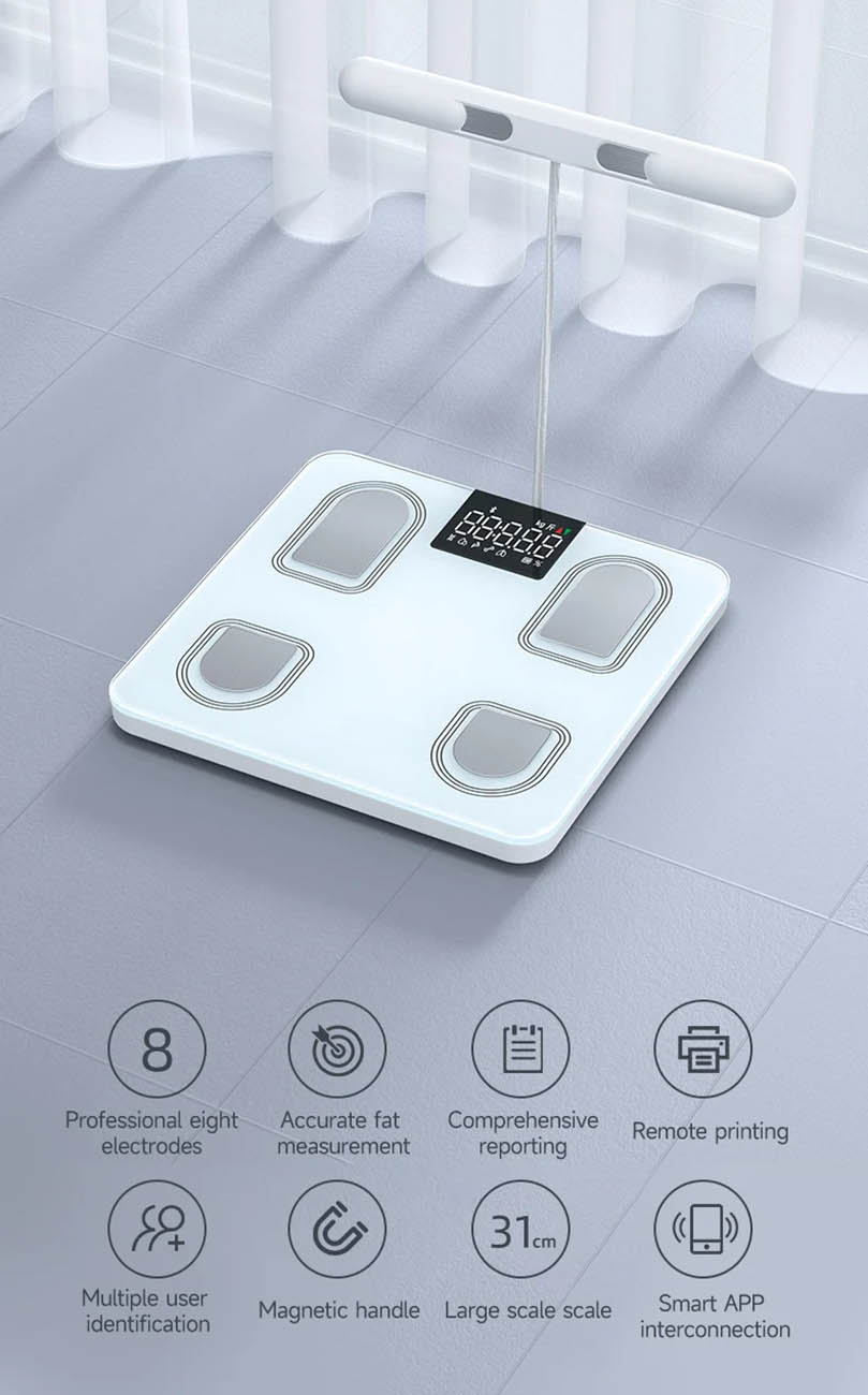 يتميز بتقنية ثمانية الأقطاب اللي تضمن لك نتائج وقياسات دقيقة للجسم.