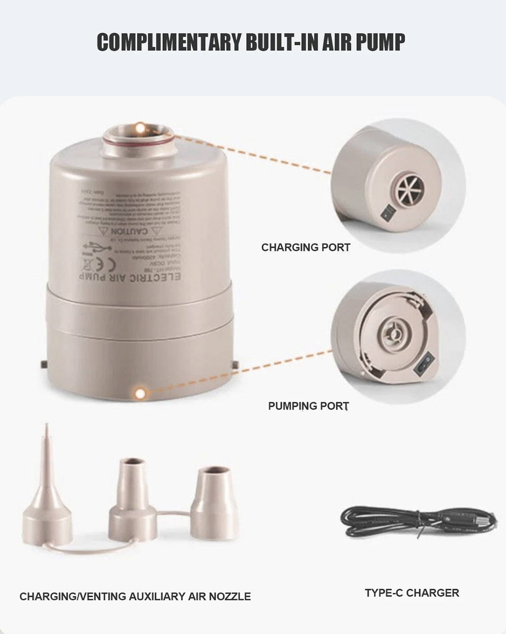 تحتوي ايضاً على مخدة قابلة للنفخ لتوفير راحة اضافية.