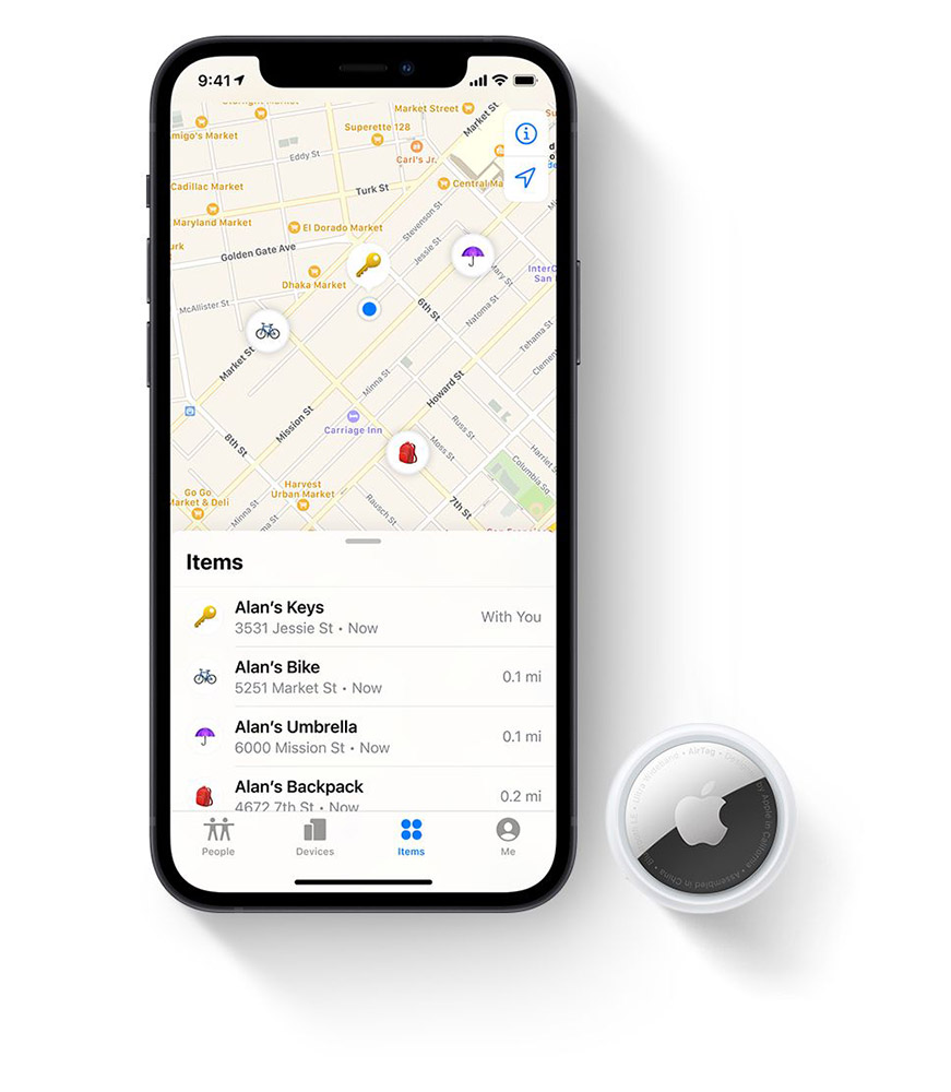 اللي يميز قطعة AirTag عن غيرها من القطع المنافسة هو انها لا تحتاج الى GPS او انترنت او بلوتوث للعمل .. لانها حرفياً تستخدم كل اجهزة ابل اللي حولها لتحديث مكانها .. فمثلاً لو ضيعت الشنطة وداخلها قطعة AirTag .. بمجرد ان يمر شخص عنده ايفون او ايباد ، راح يتحدث مكان ال AirTag ويبين عندك على الخريطة.