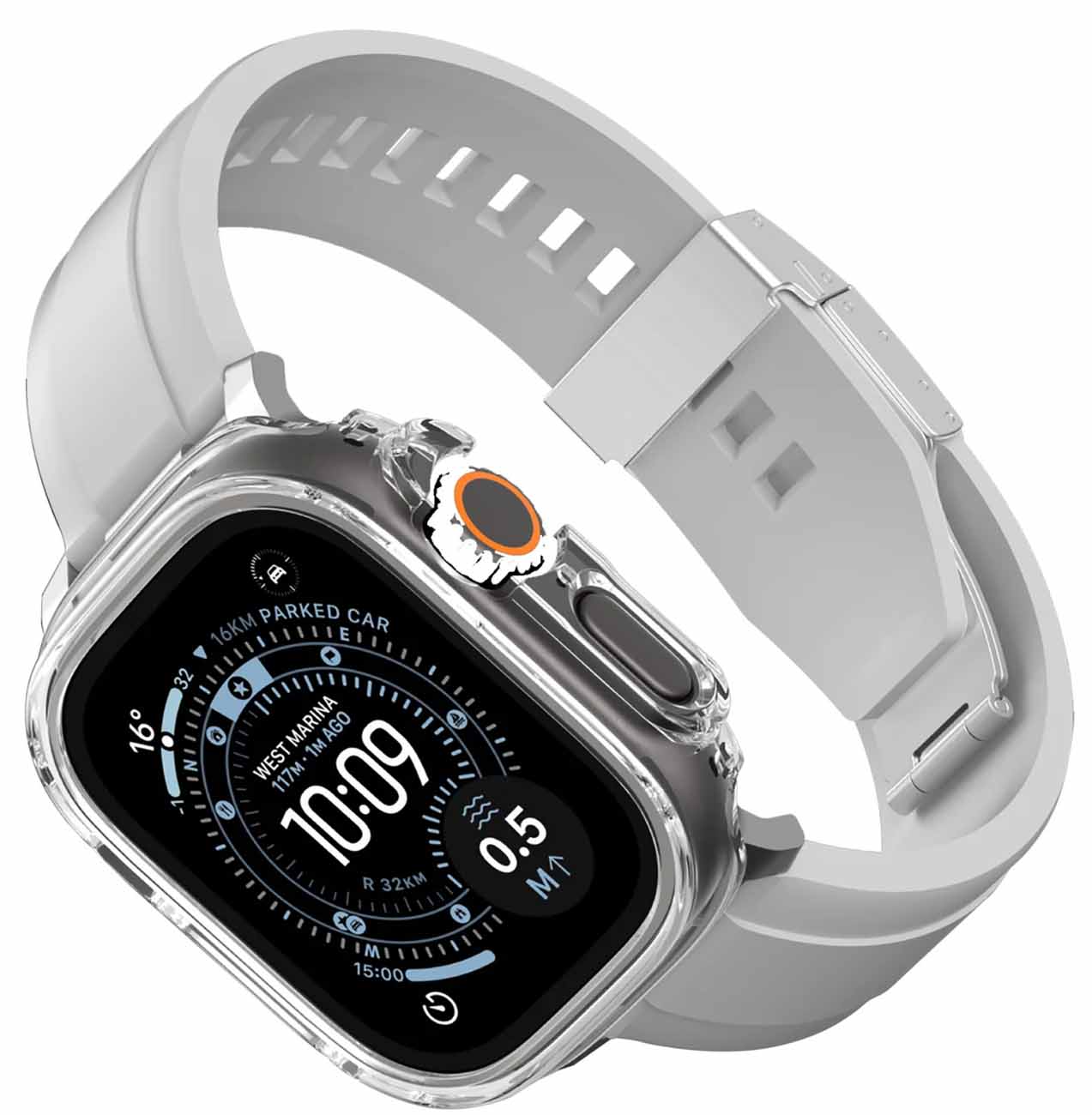 كفر AmazingThing Radix لساعة ابل الترا 3 / حجم 49 / ضد الطيحات و الخدوش / شفاف