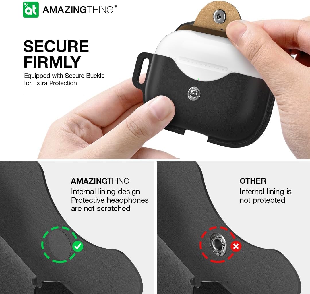 كفر AmazingThing Marsix Pro لسماعة ابل AirPods برو 2 / مع زر قفل أمامي / جلد بني