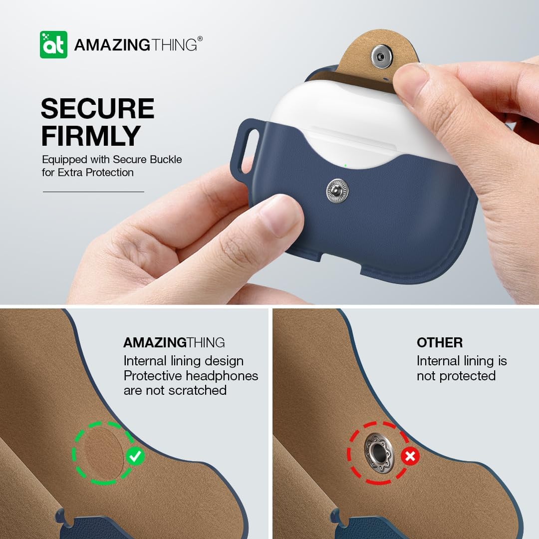 كفر AmazingThing Marsix Pro لسماعة ابل AirPods برو 2 / مع زر قفل أمامي / جلد بني