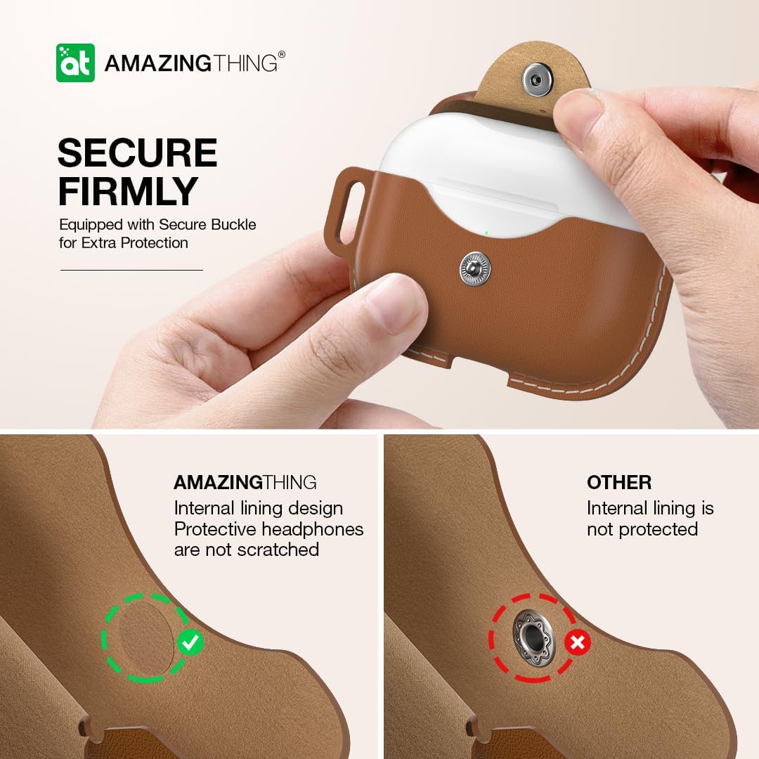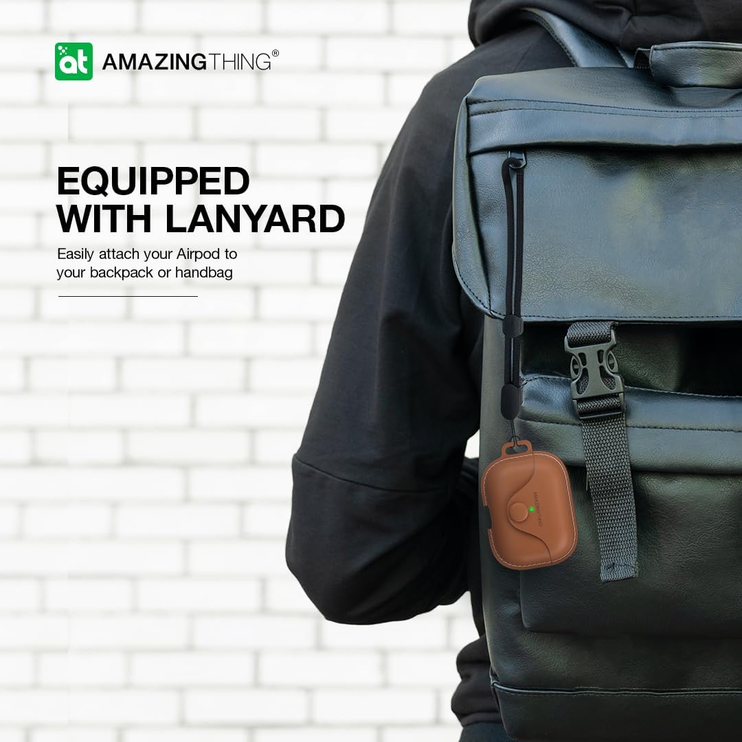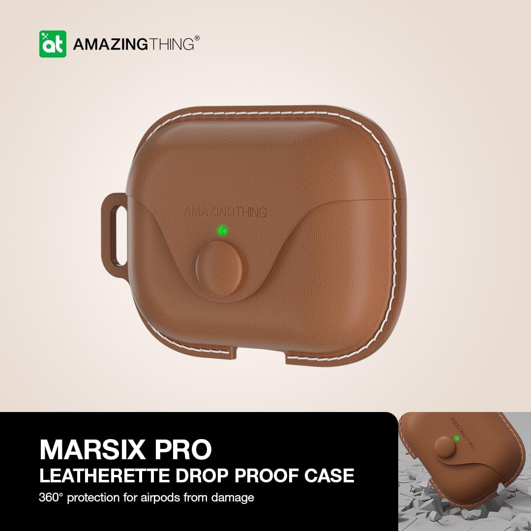 كفر AmazingThing Marsix Pro لسماعة ابل AirPods برو 2 / مع زر قفل أمامي / جلد اسود