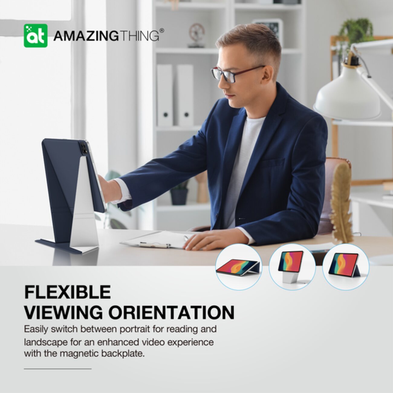 تقدر تغير بين زوايا مختلفة بسهولة .. مثلاً تثبت الايباد بشكل علوي او سفلي.