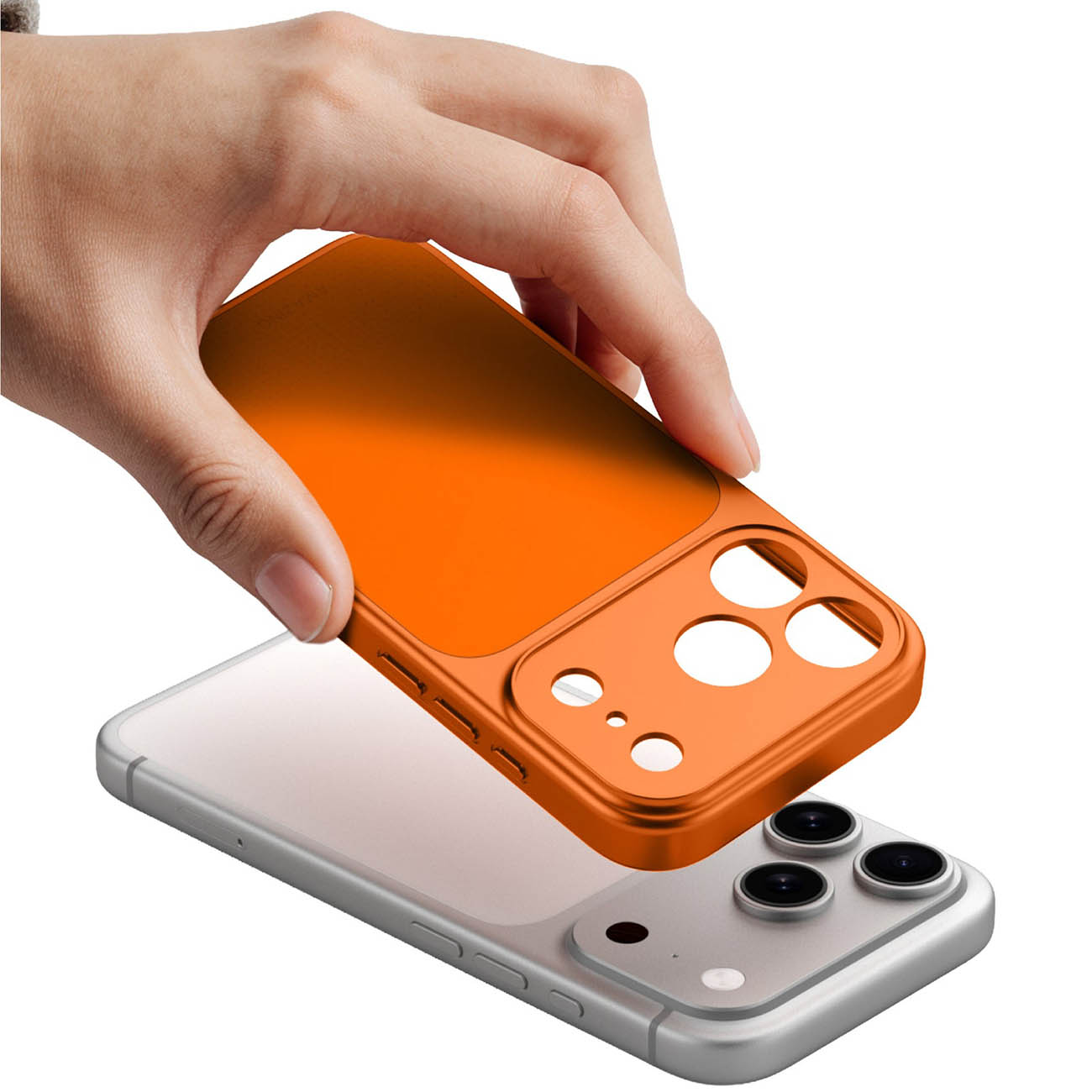 كفر AT Minimal LensGuard لايفون 17 برو ماكس / يدعم MagSafe / ضد الطيحات / برتقالي شفاف