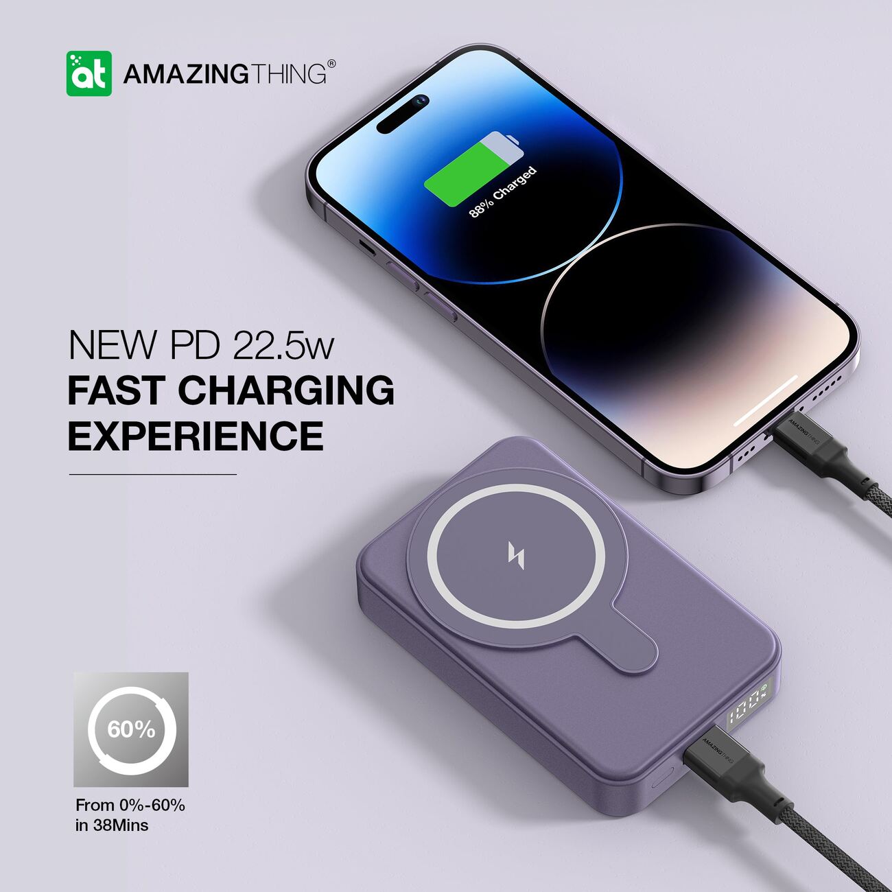 لما تثبته مع الايفون بدون واير .. يشحن بشكل لاسلكي بقوة 15 واط ، اللي هي أقصى سرعة يدعمها الايفون.