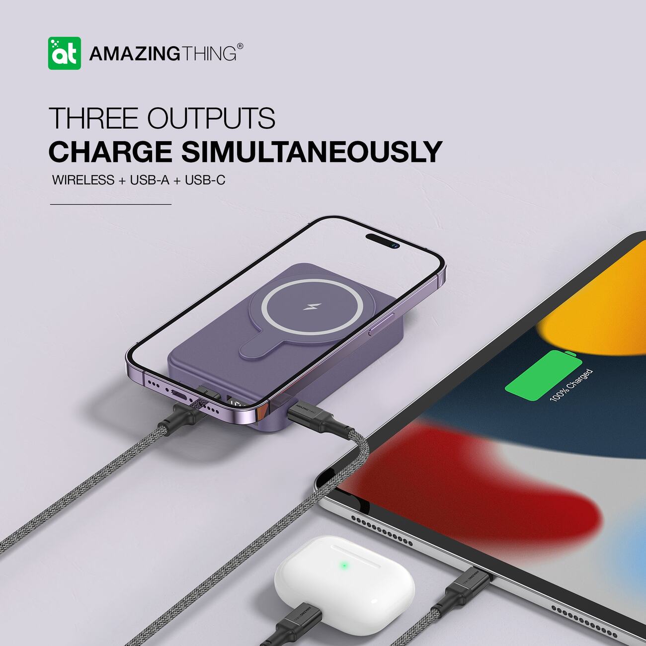 يشحن 3 اجهزة بنفس الوقت .. جهاز لاسلكي .. جهاز من USB .. جهاز من تايب سي.