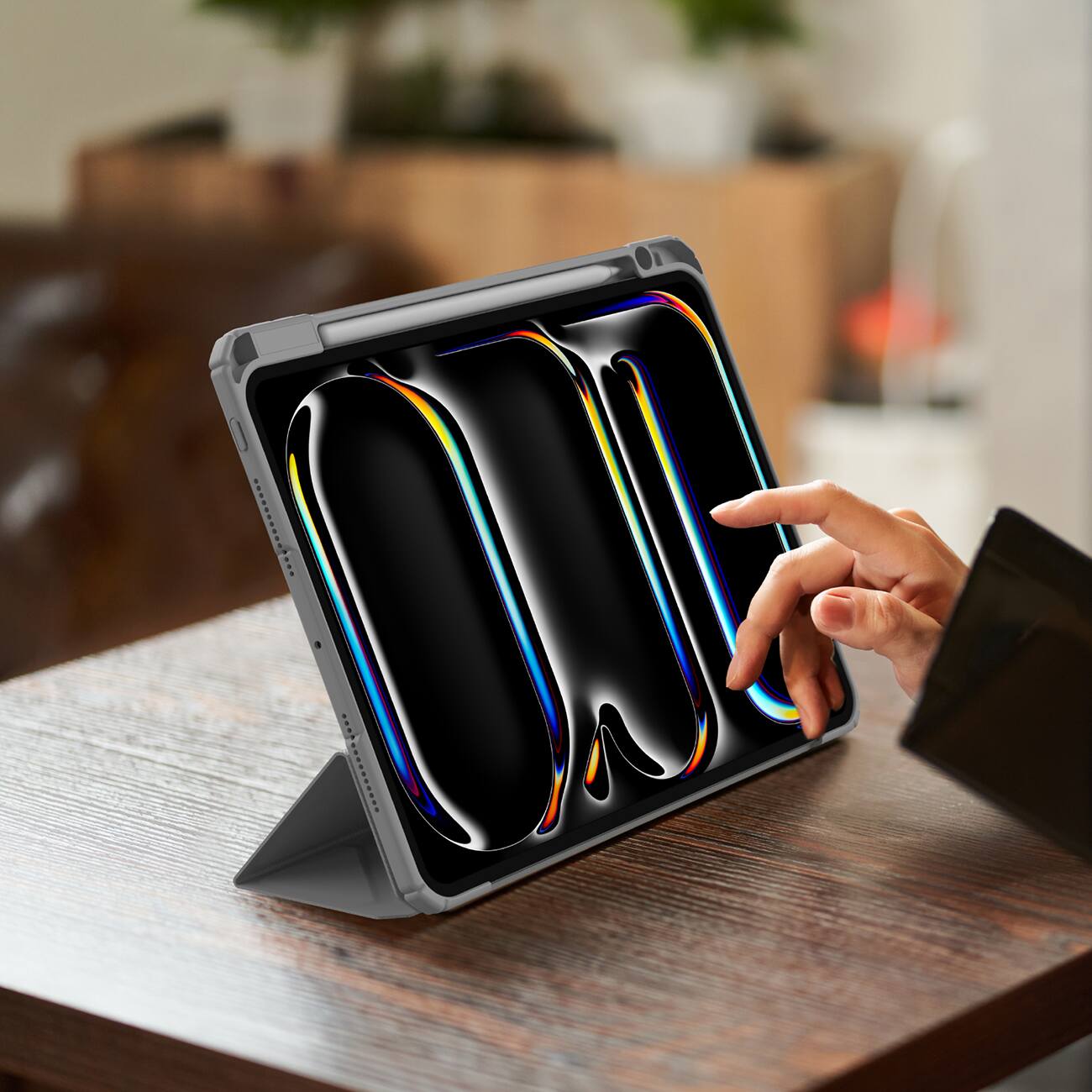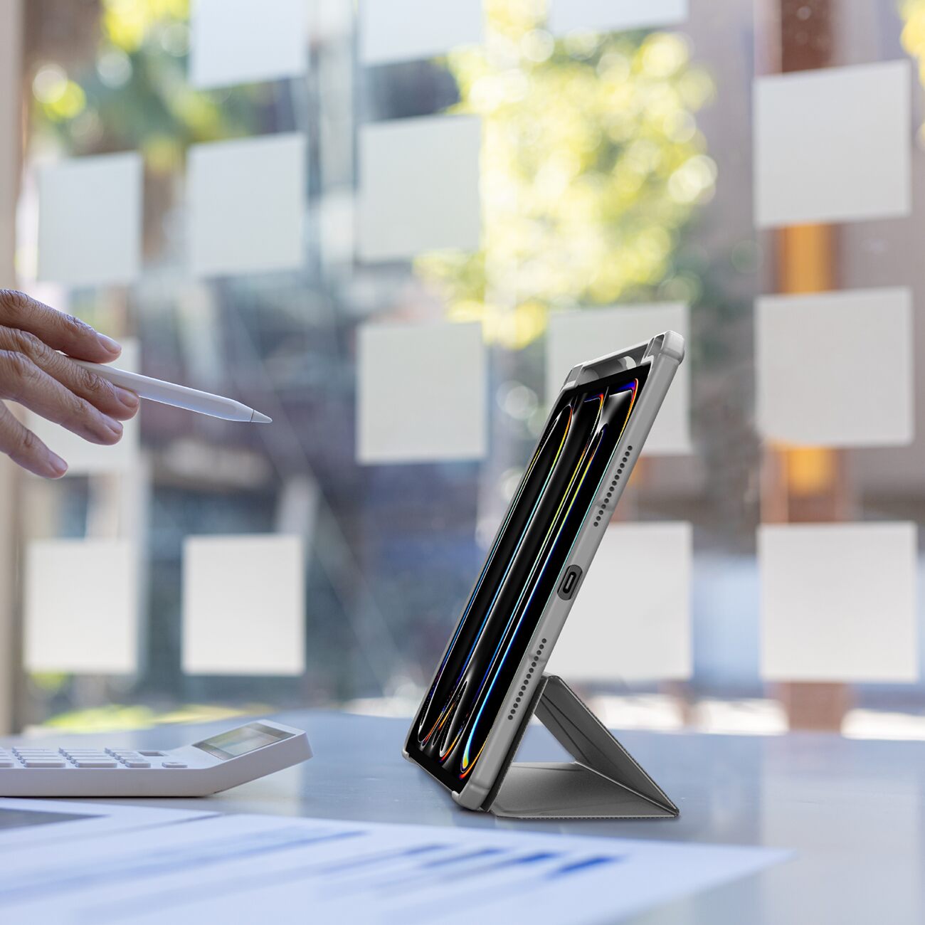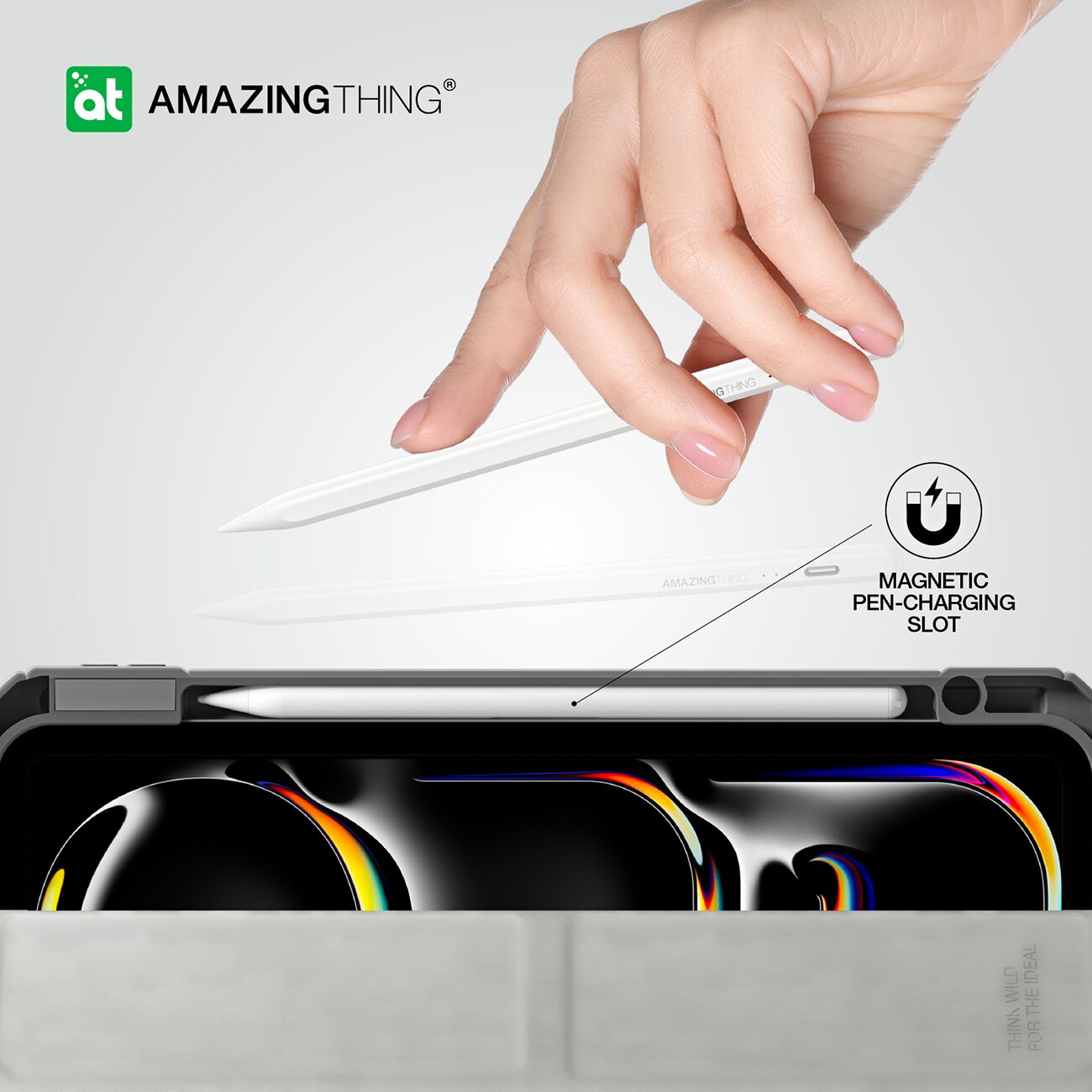 يحتوي على مكان لشحن قلم ابل مغناطيسياً.
