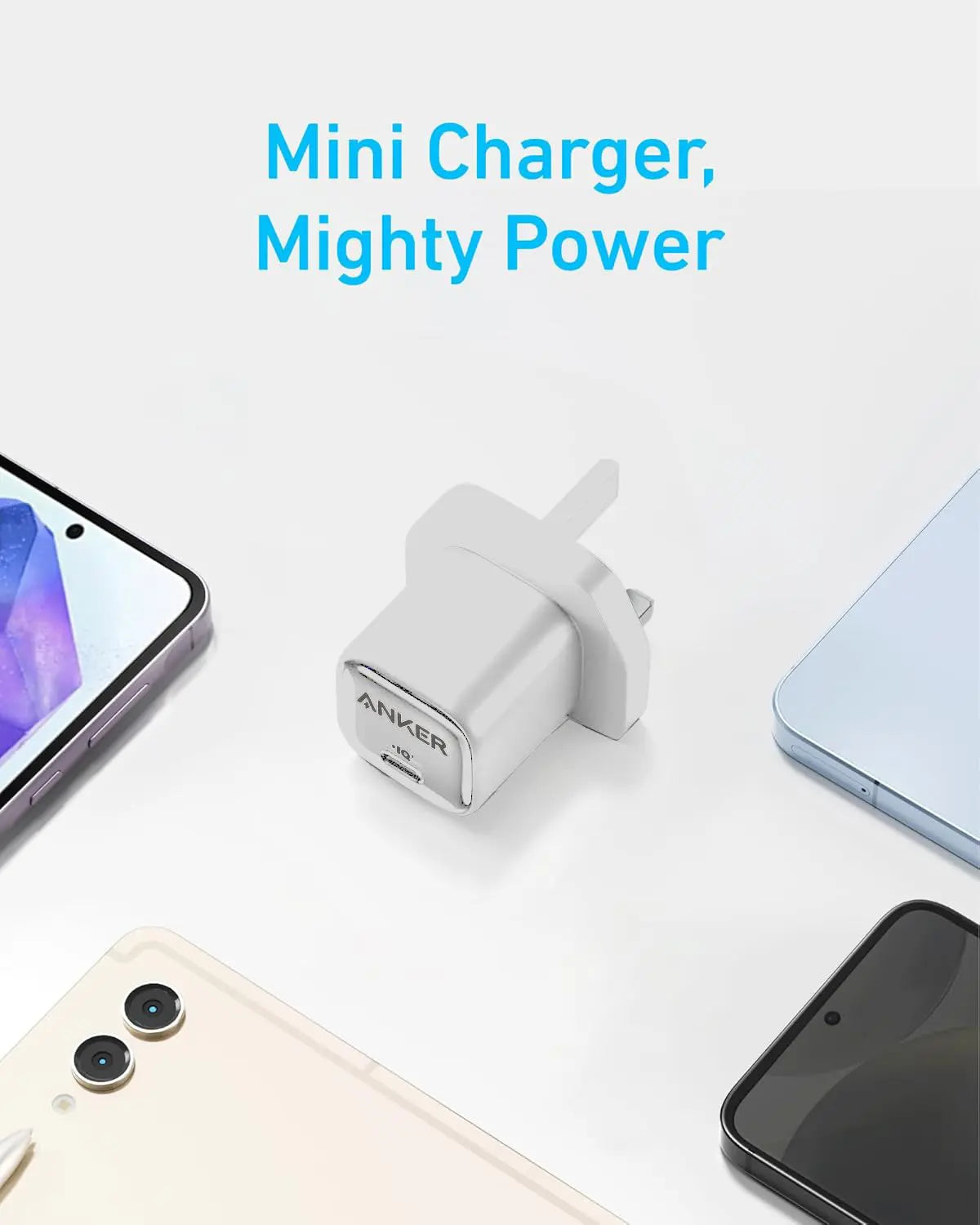 شاحن انكر الجديد نانو برو / تقنية PD / قوة 20 واط / حجم صغير جداً / ازرق