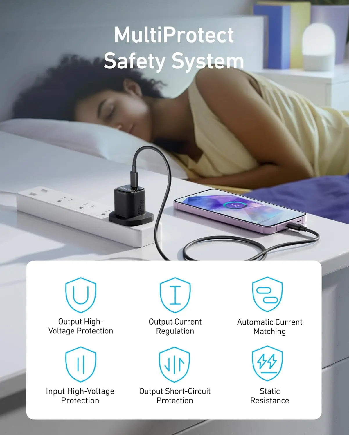 شاحن انكر نانو 3 بقوة 30 واط / مع مدخل تايب سي / اسود