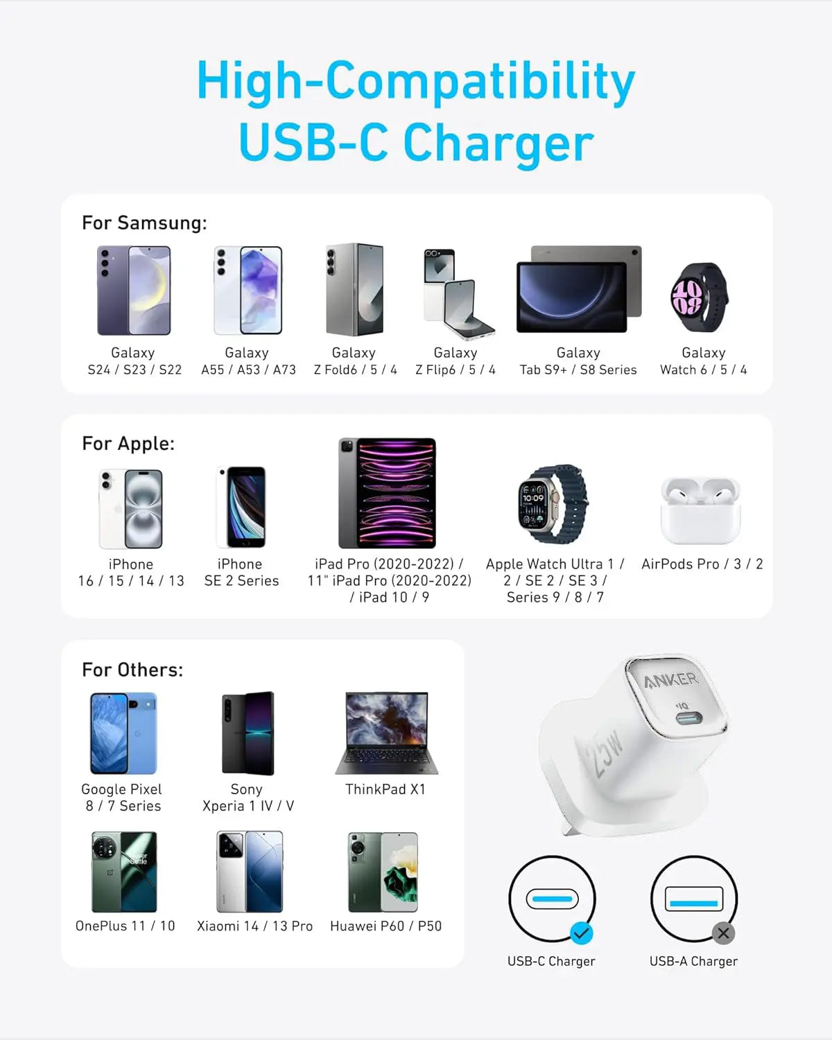 شاحن انكر / مع مدخل تايب سي / قوة 25 واط / حجم صغير