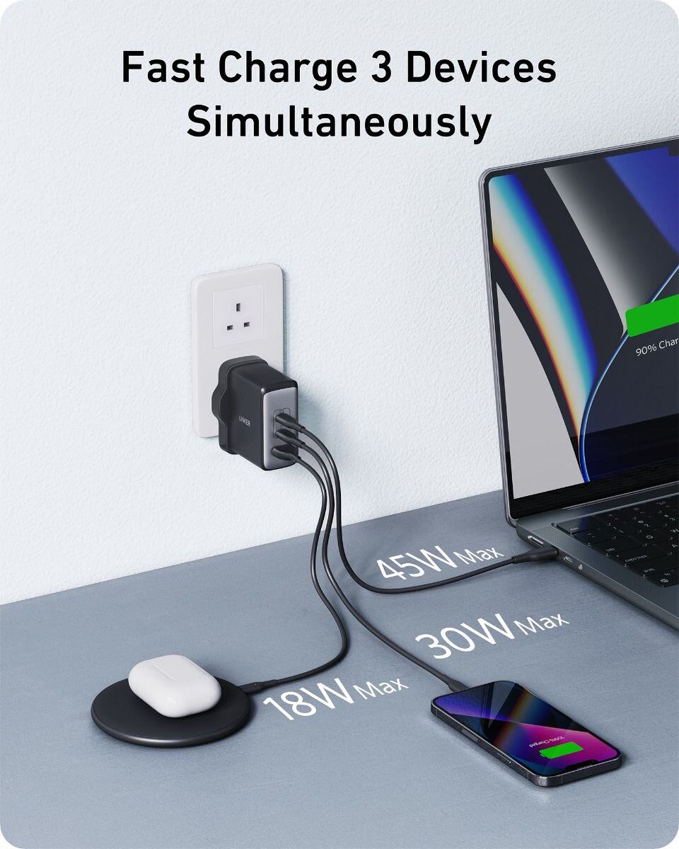 تقدر بكل سهولة تشحن 3 اجهزة بنفس الوقت.