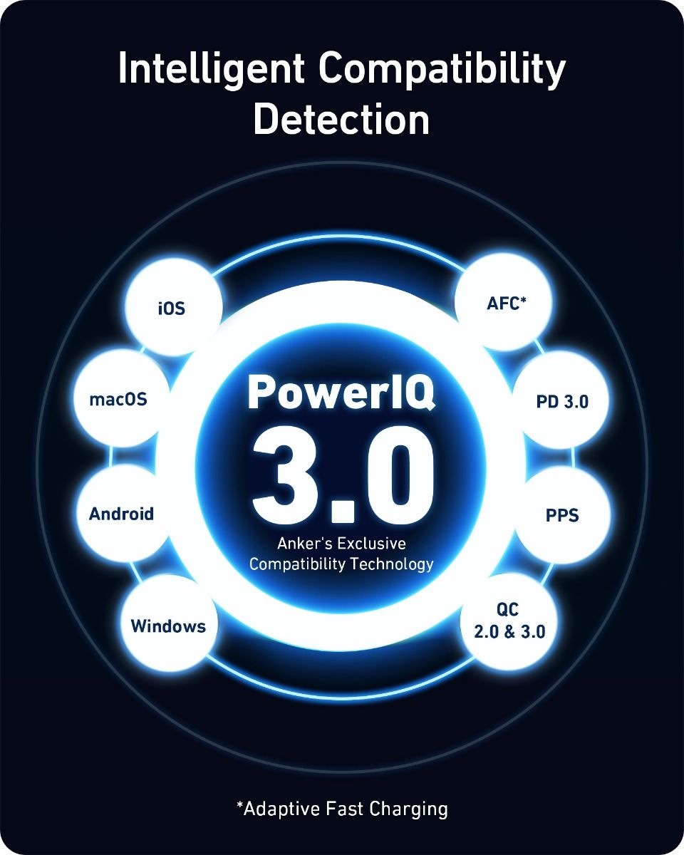 يدعم تقنية PowerIQ 3.0 اللي تتعرف على جهازك وتعطيه أقصى طاقة يدعمها.