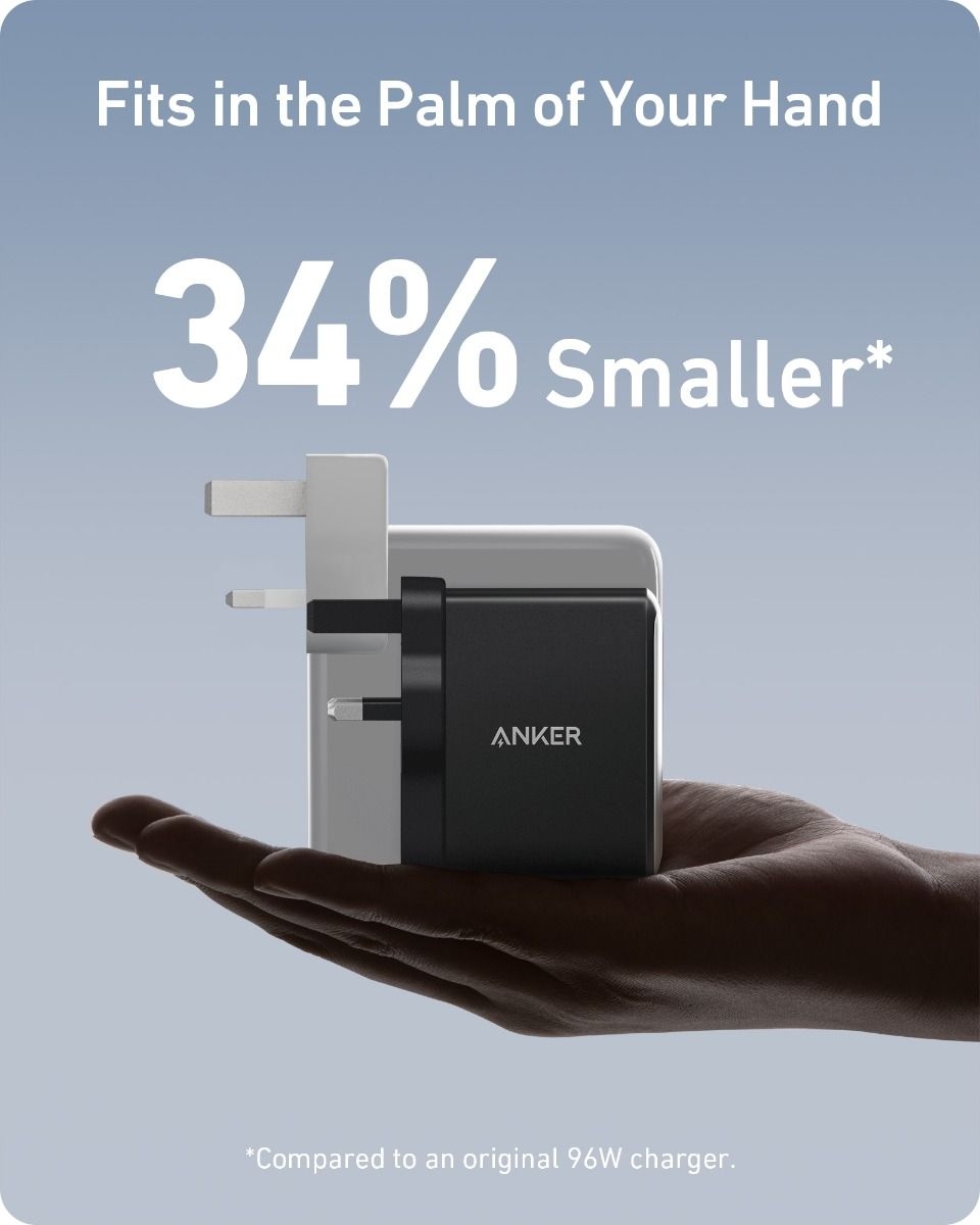 يدعم تقنية GaN اللي تعطيك شاحن قوي مع حجم صغير ووزن خفيف.