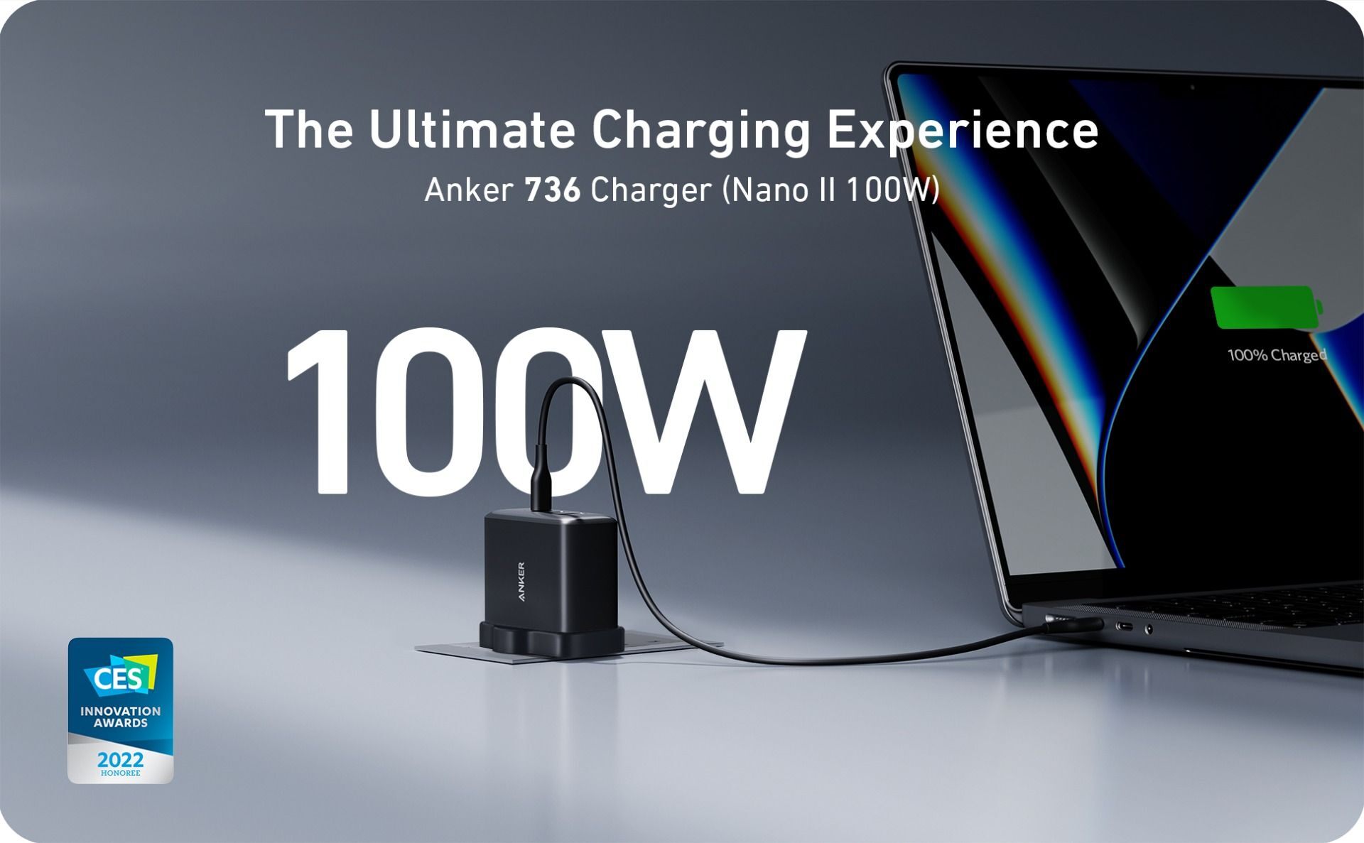 قوة شحن 100 واط تكفي لشحن الجوال .. لابتوب .. ايباد .. حرفياً كل اجهزتك من شاحن واحد صغير وخفيف.
