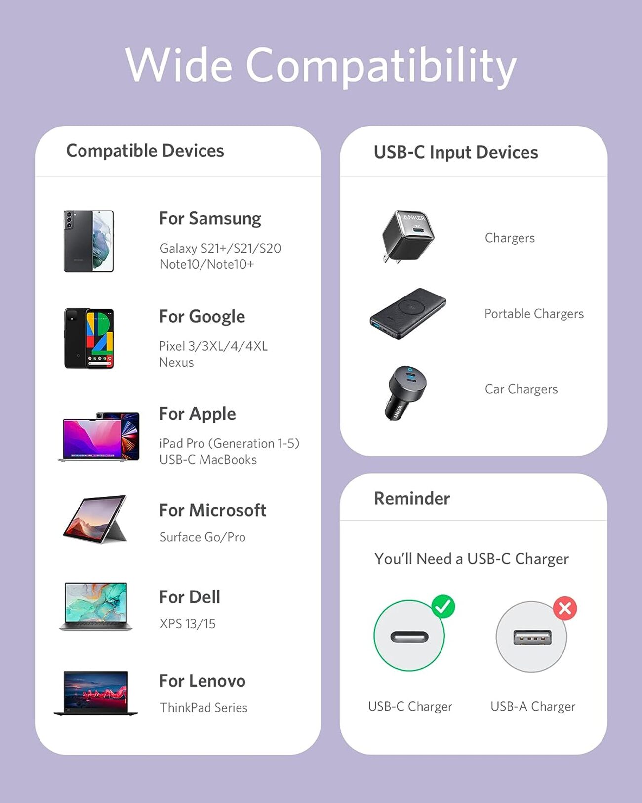 ممتاز لشحن اجهزة اللابتوب مثل ماك بوك برو .. ماك بوك اير .. لابتوبات الويندوز اللي تشحن من تايب سي.