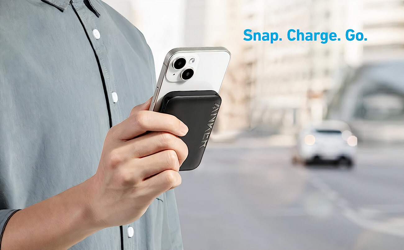لما تقربها من الايفون ، تثبت مباشرة بالمغناطيس اللي فيه مع تقنية MagSafe.