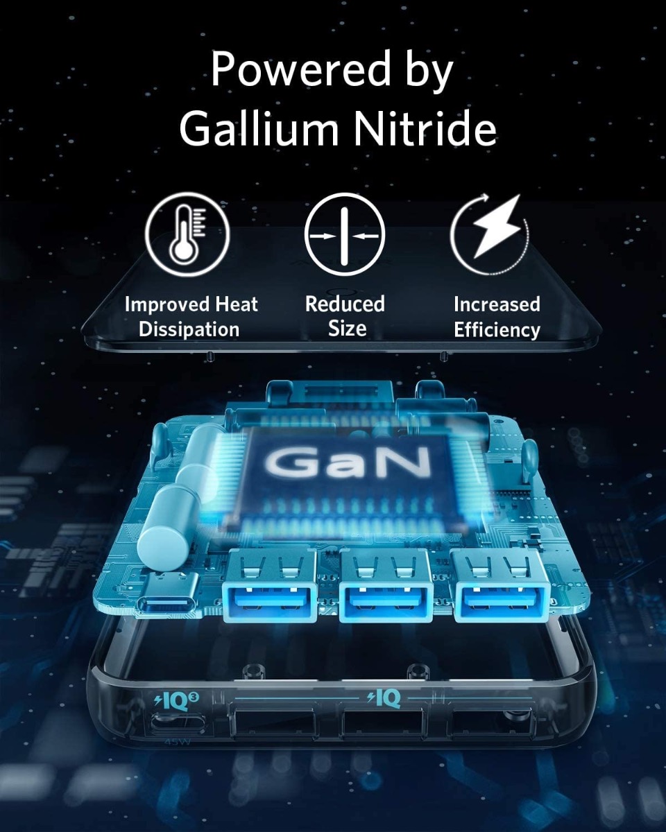 شاحن GaN من انكر بقوة 112 واط / 3 مداخل تايب سي + 3 مداخل USB