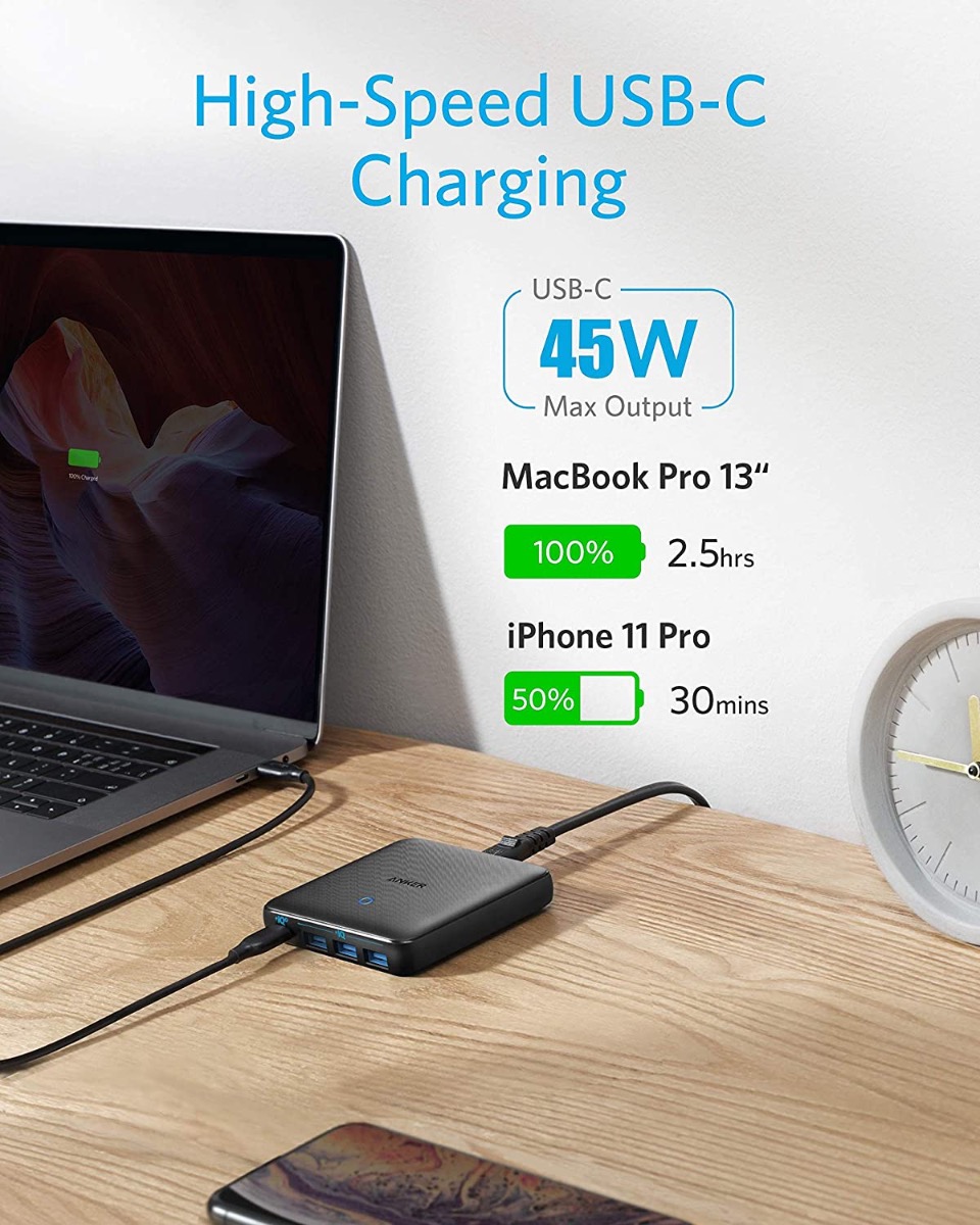 شاحن انكر اللاسلكي لبطارية انكر برايم / قوة 100 واط / مع مدخلين تايب سي و مدخل USB