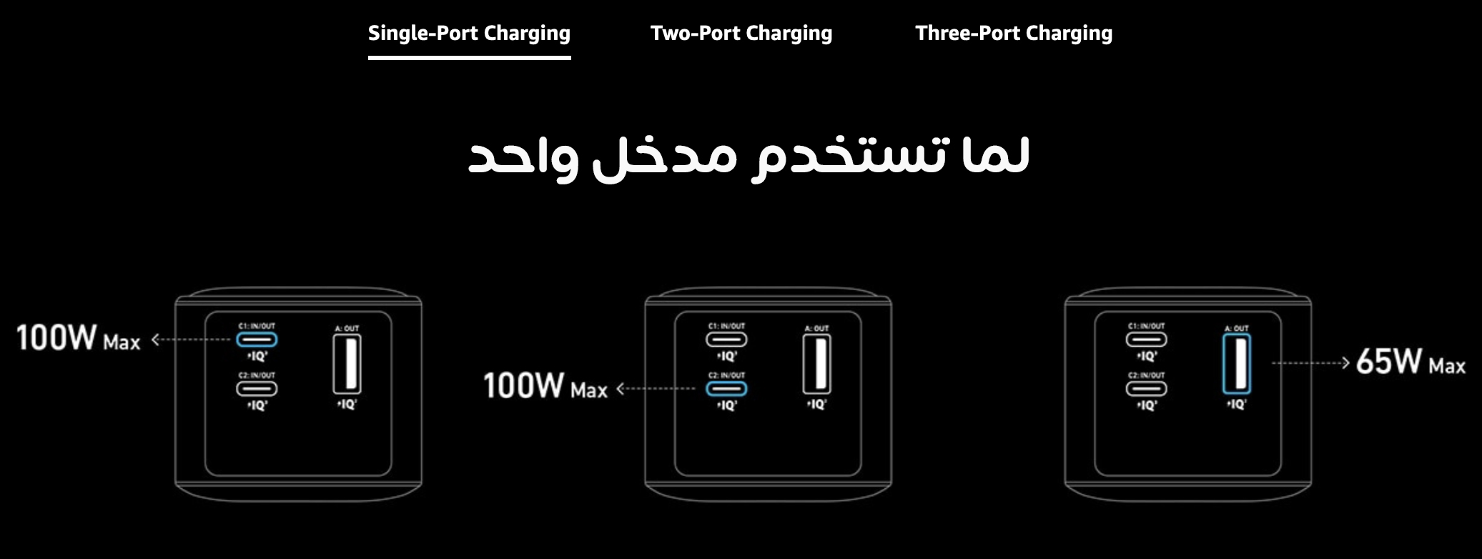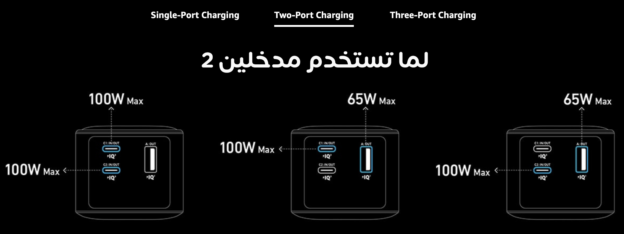 تقدر تشحن لابتوبين عن طريقها وكل لابتوب يشحن 100- واط كاملة.
