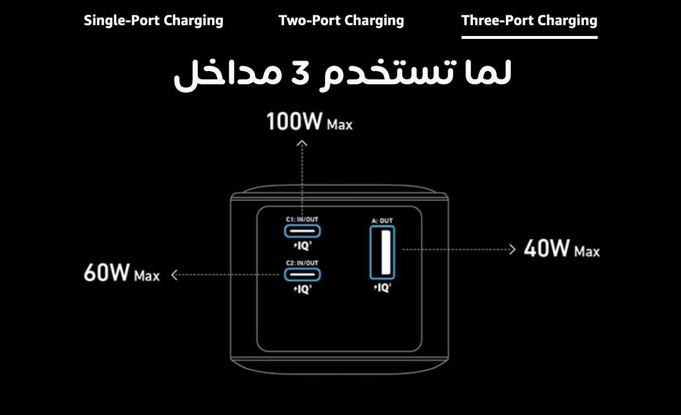 قوتها 200 واط ، يعني تعطيك شحن سريع PD خارق رغم حجمها.