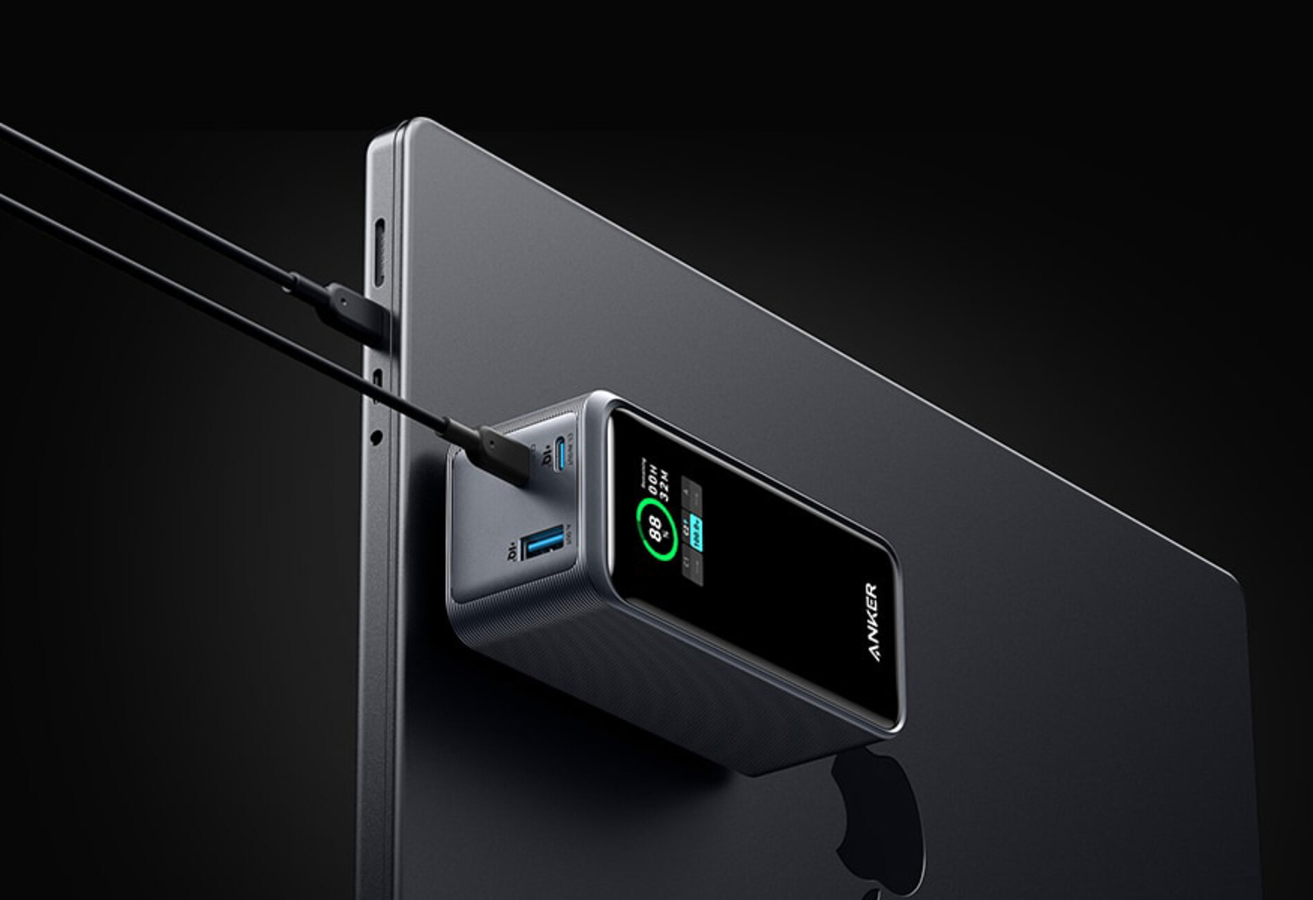فيها شاشة تعرض لك معلومات عن الاستهلاك وسرعة الشحن والمتبقي من الطاقة.