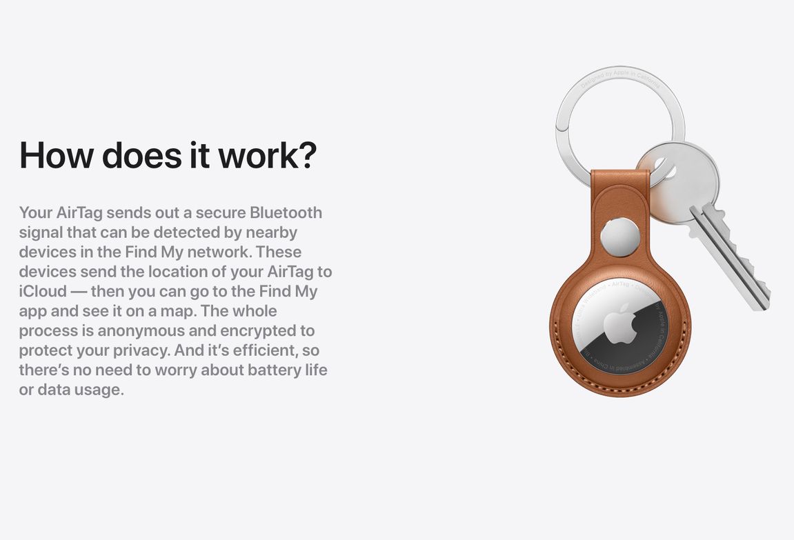 اللي يميز قطعة AirTag عن غيرها من القطع المنافسة هو انها لا تحتاج الى GPS او انترنت او بلوتوث للعمل .. لانها حرفياً تستخدم كل اجهزة ابل اللي حولها لتحديث مكانها .. فمثلاً لو ضيعت الشنطة وداخلها قطعة AirTag .. بمجرد ان يمر شخص عنده ايفون او ايباد ، راح يتحدث مكان ال AirTag ويبين عندك على الخريطة.