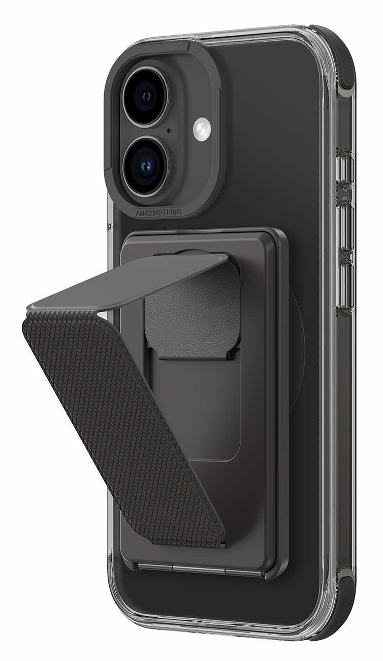 كفر AmazingThing Omni لايفون 16 / يدعم MagSafe / فيه مسكة و ستاند / اسود