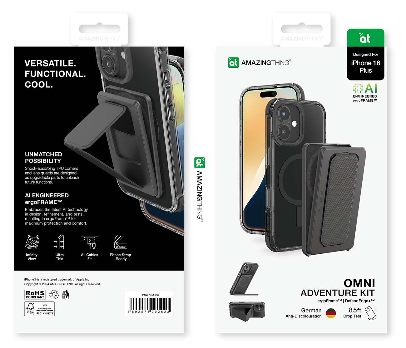 كفر AmazingThing Omni لايفون 16 بلس / يدعم MagSafe / فيه مسكة و ستاند / اسود