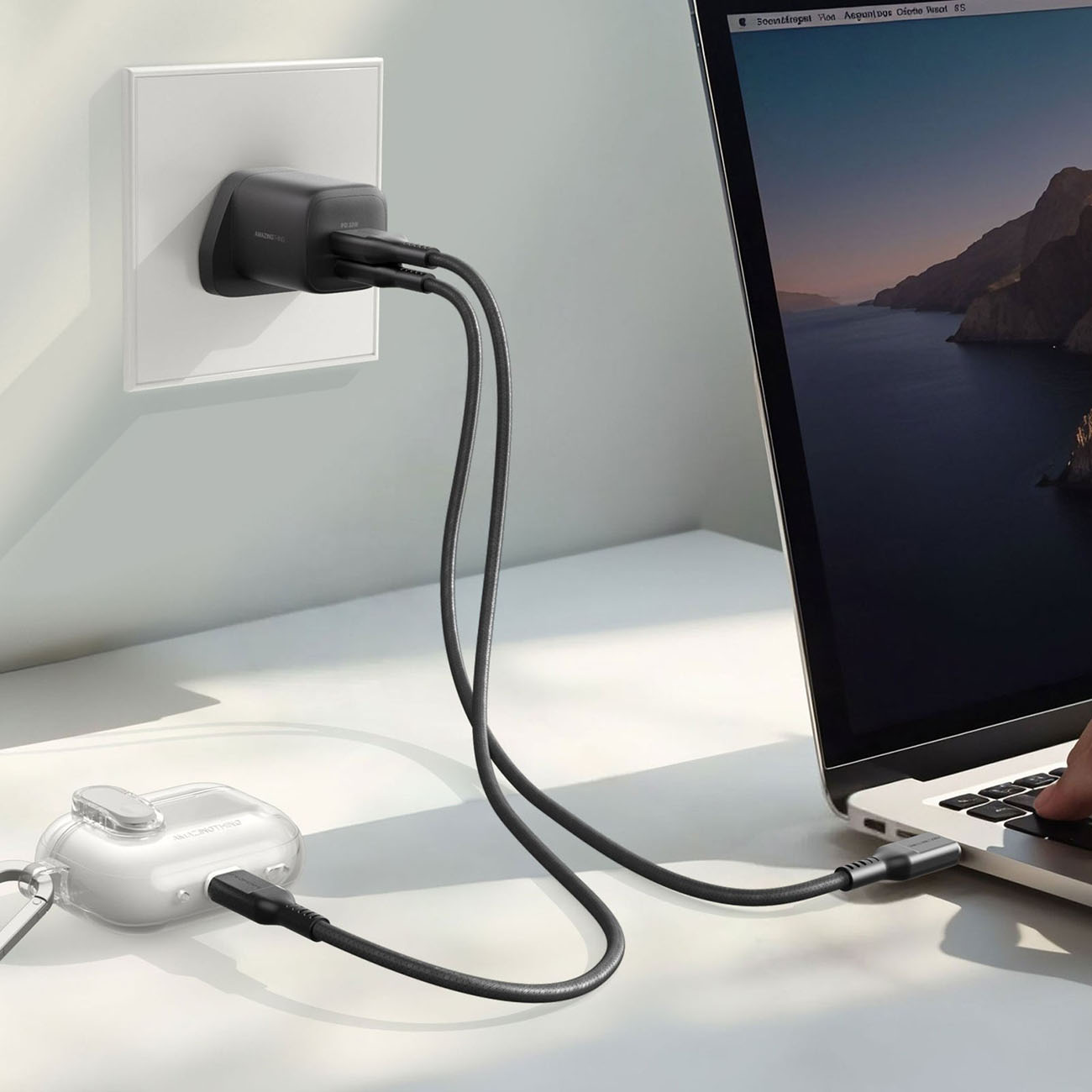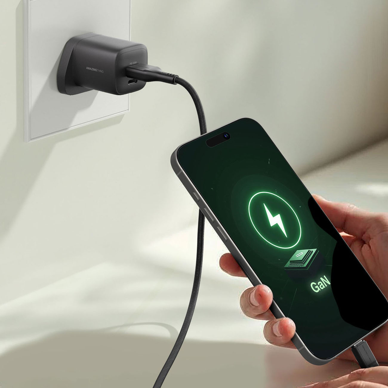 شاحن AmazingThing Thunder GaN / مع مدخلين تايب سي + مدخل USB / قوة 65 واط