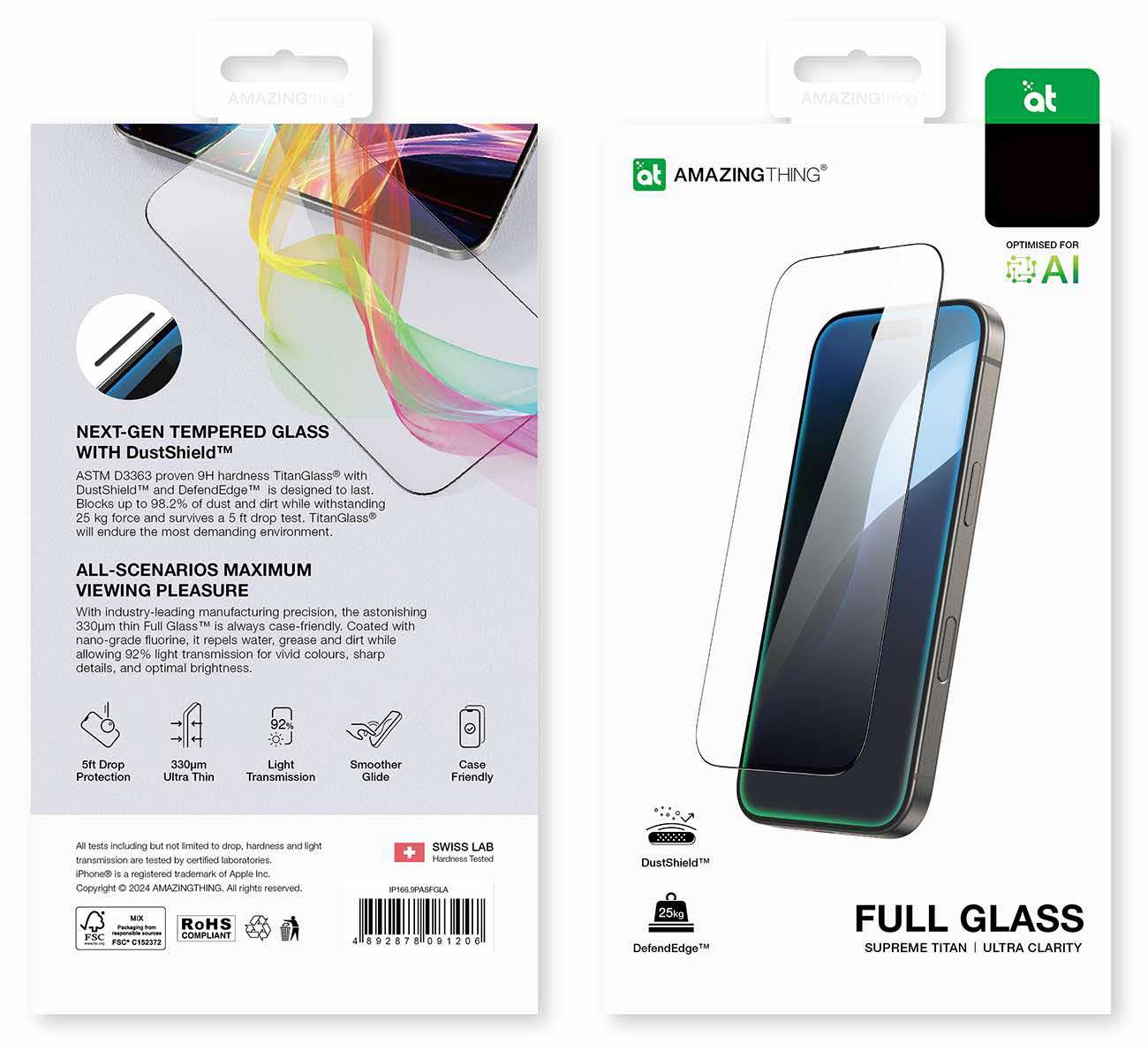 حماية AmazingThing Titan لايفون 16 بلس / زجاج شفاف / صلابة عالية