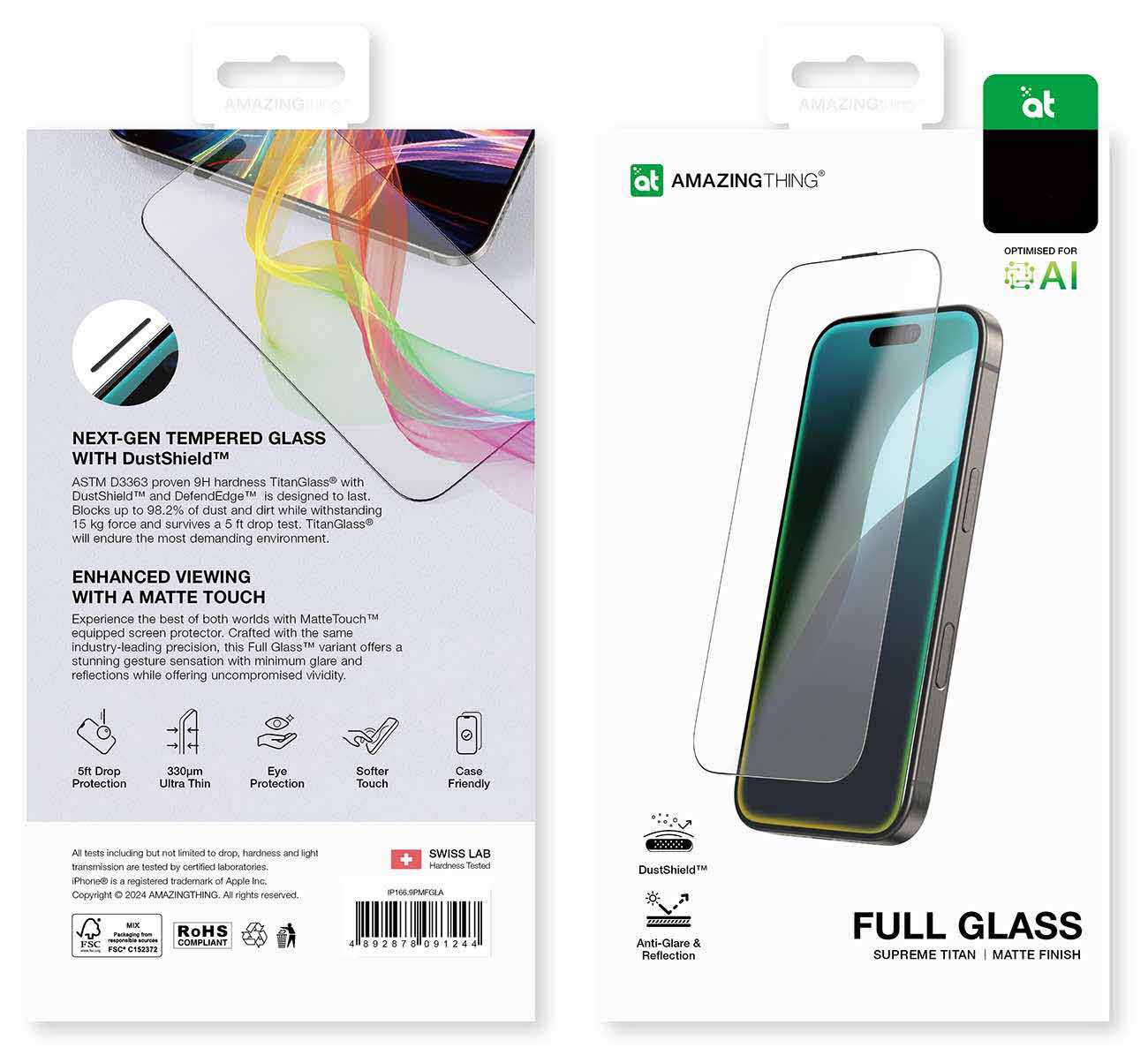 حماية AmazingThing Titan لايفون 16 برو / زجاج مطفي / صلابة عالية