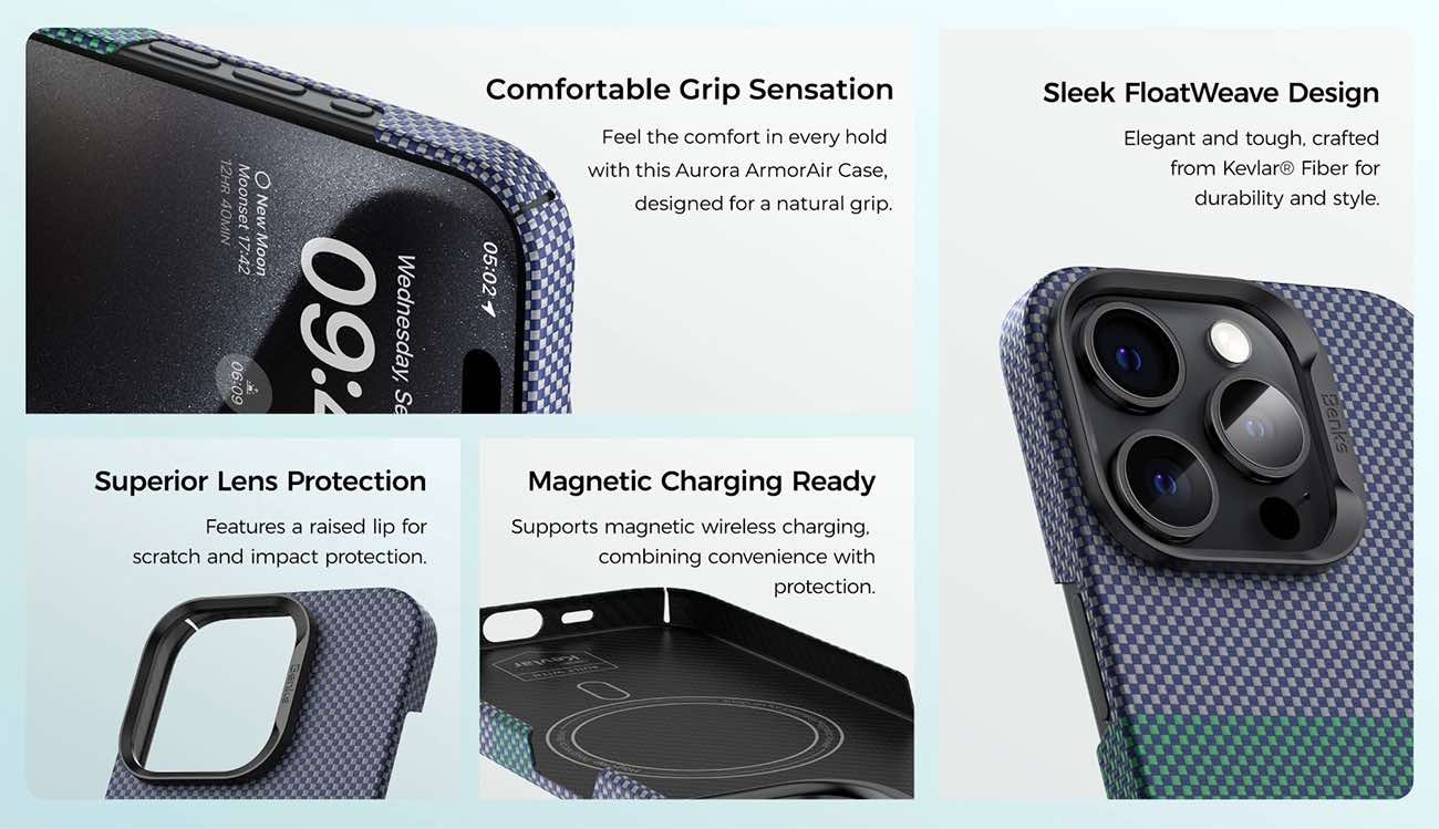 كفر Aurora ArmorAir لايفون 15 برو ماكس من Benks / كيفلار فايبر / نحيف و خفيف / يدعم MagSafe