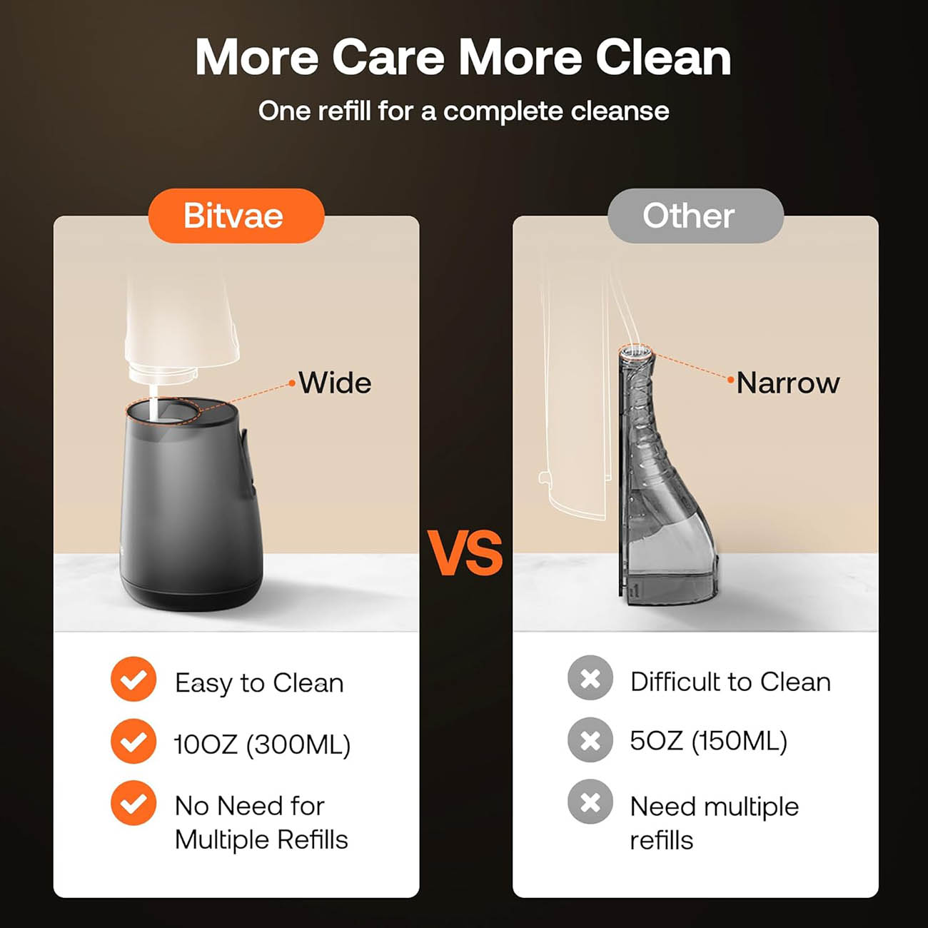 سعة خزان الماء: 300 مل .. يعطيك 60 ثانية من التنظيف المتواصل بدون اعادة تعبئة.
