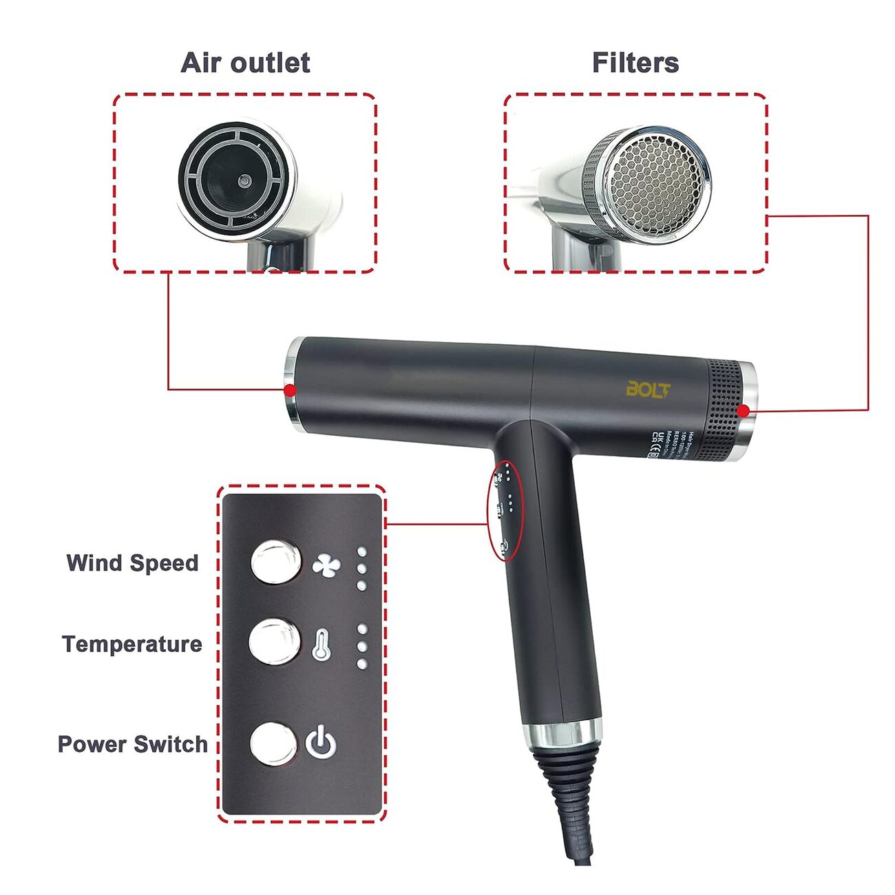 تجفيف أسرع: المحرك المتطور يوفر سرعة هواء أسرع بـ5-6 مرات من المحركات التقليدية.