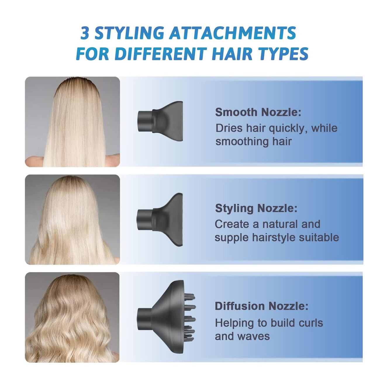3 مستويات حرارة وسرعة: إعدادات منخفضة ومتوسطة وعالية للتحكم الكامل في تسريحة الشعر.