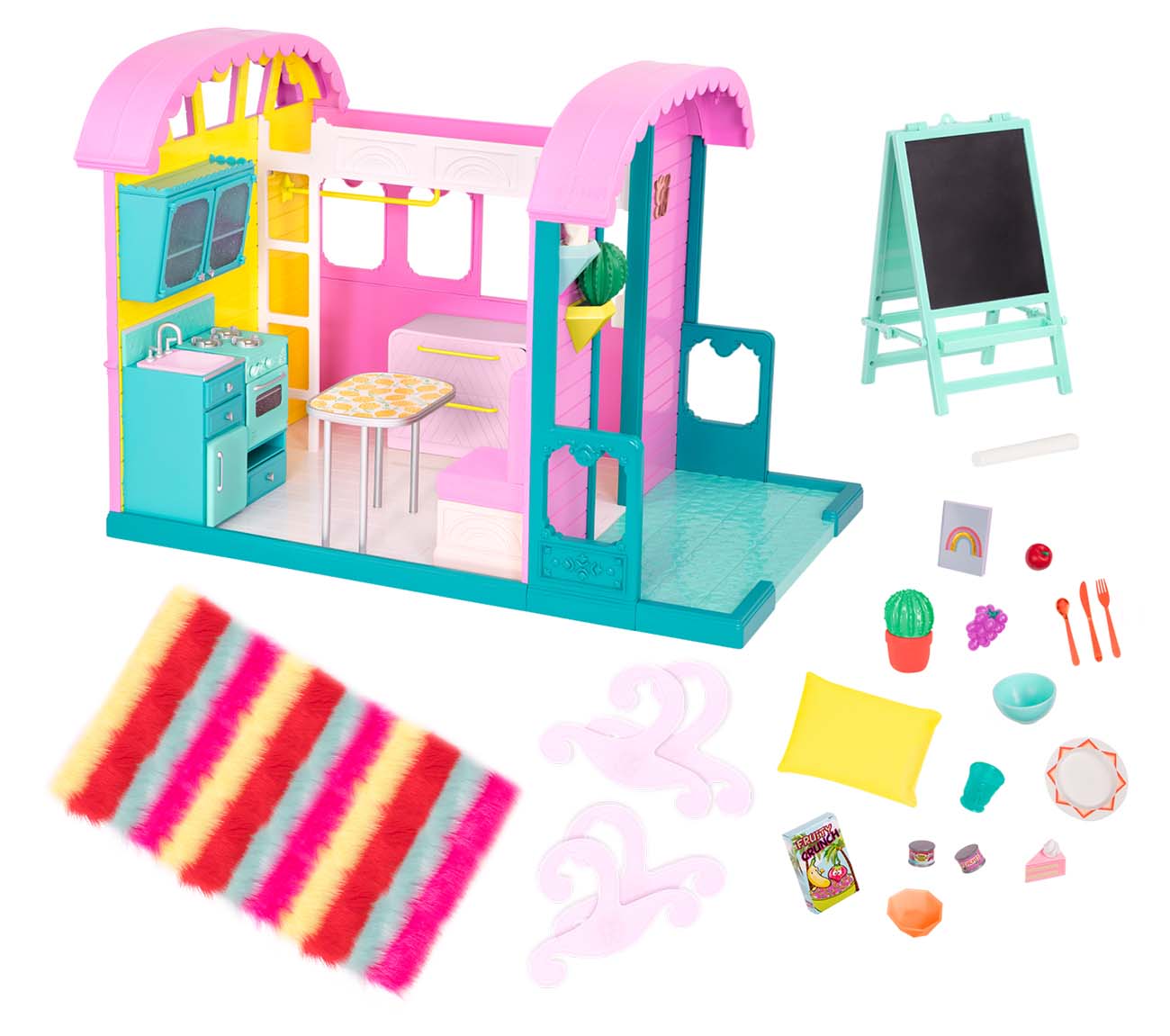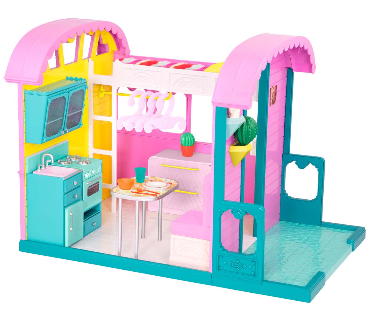 وفرنا لطفلتك بيت الدمى من Glitter Girls Caravan للعب وتخيل حياة في البيت.