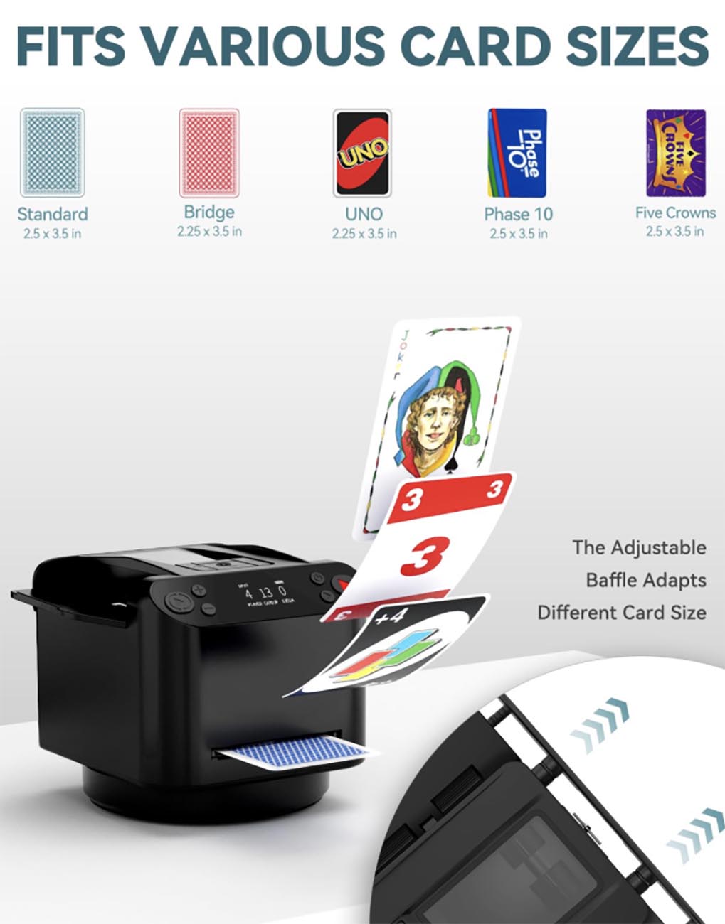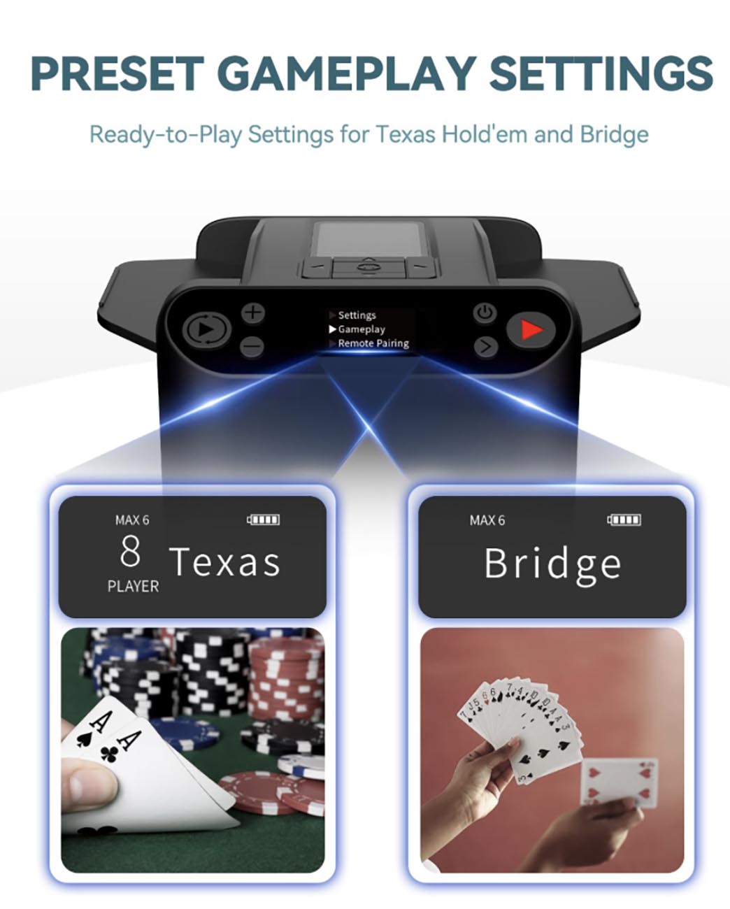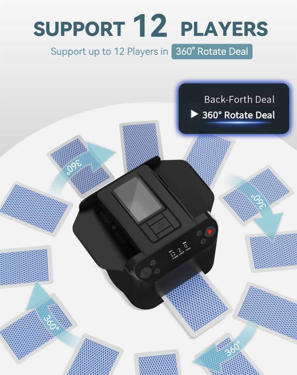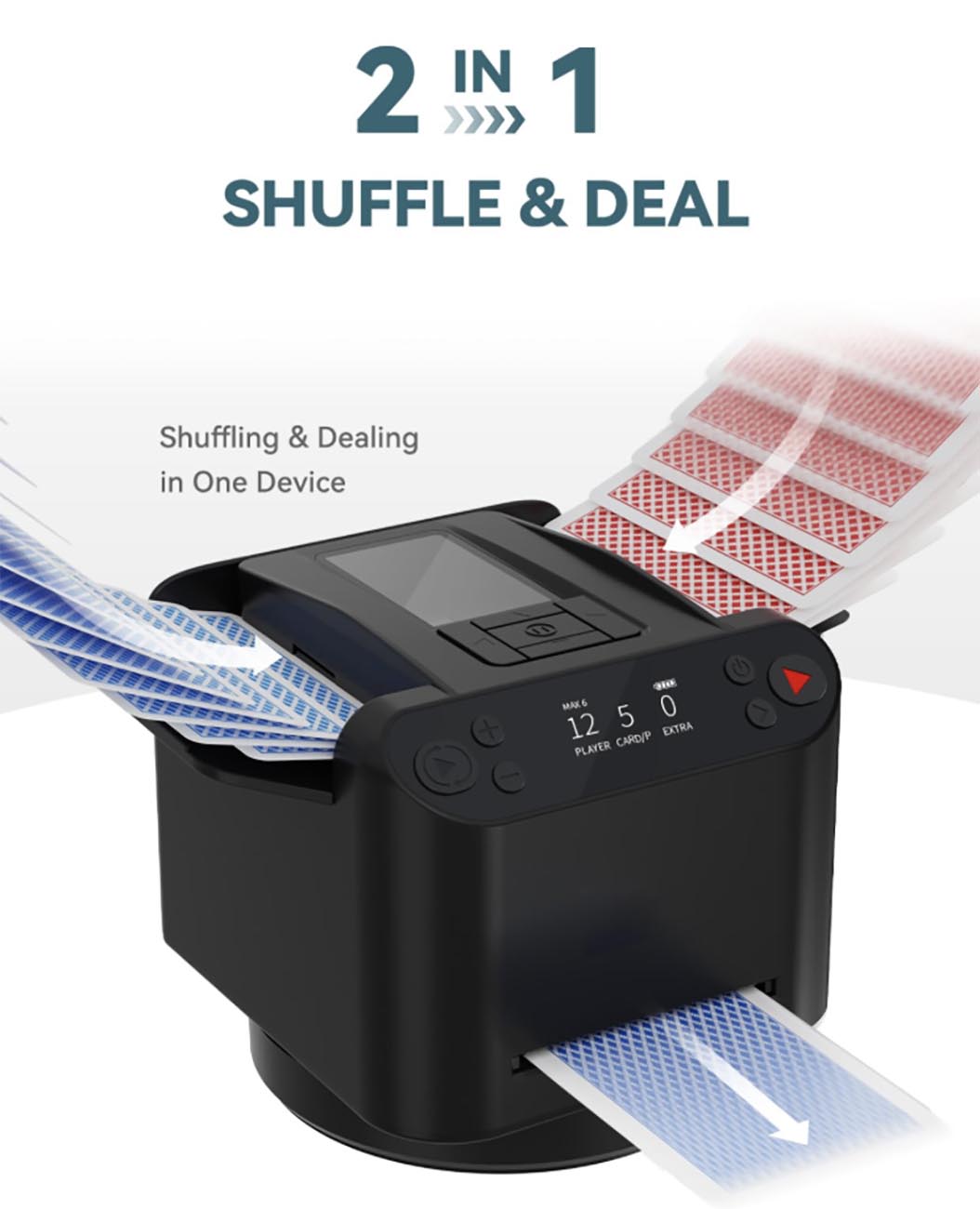 عبارة عن جهاز يخلط لك اوراق اللعب ويقوم بتوزيعهم بشكل تلقائي.