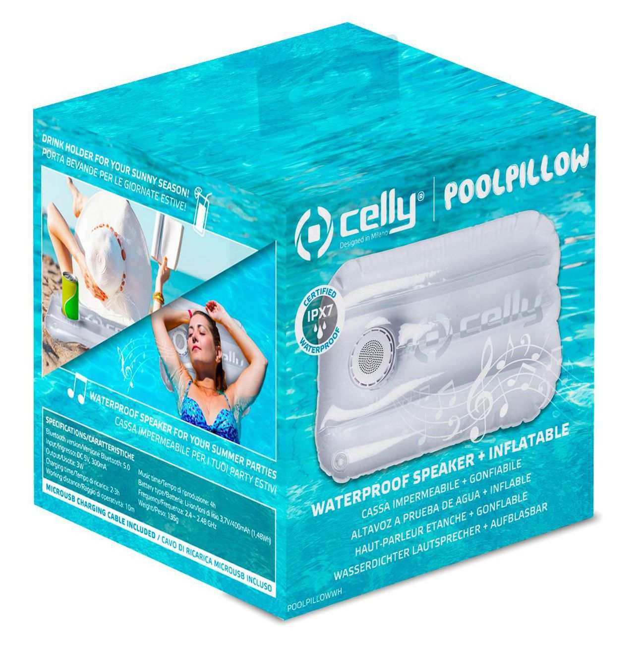وسادة Celly للمسبح / قابلة للنفخ بالهواء / فيها سماعة سبيكر مدمجة / ابيض