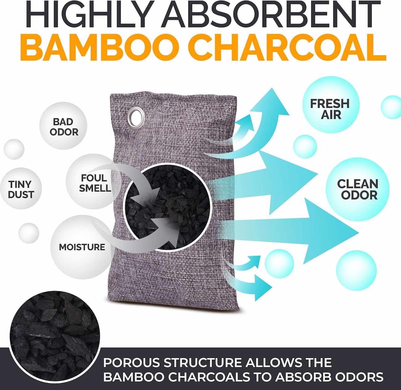 ينصح بتعريض الكيس لاشعة الشمس لمدة ساعتين كل شهر لتجديد تأثير امتصاص الروائح.