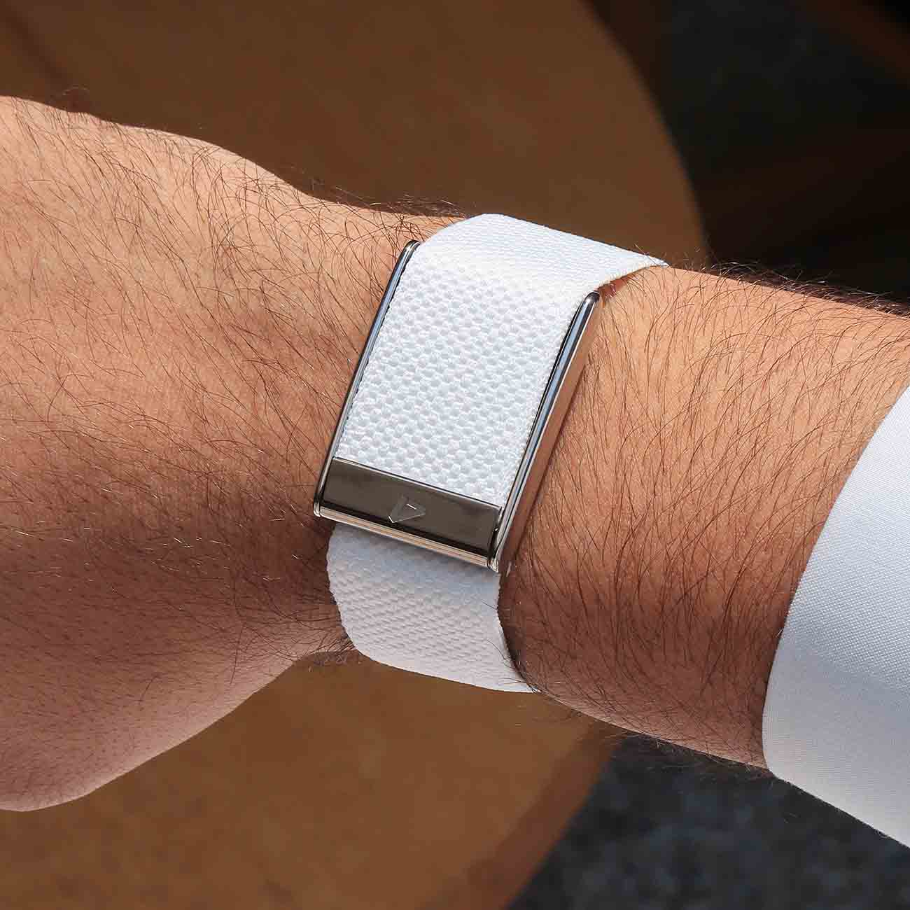 سير Dash يدعم Whoop 5 / ابيض مع اطار فضي لامع