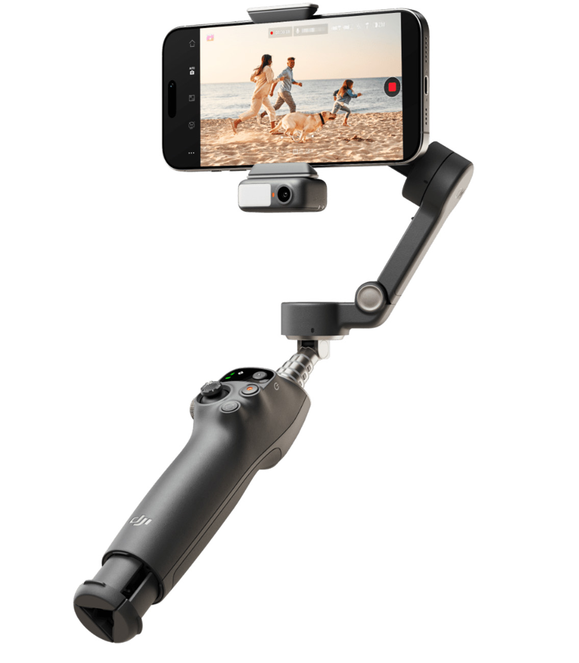 يحتوي على ترايبود مدمج يسهل عليك التقاط الفيديوات بكل سهولة .. على عكس Osmo 6 اللي كان يتطلب تركيب قطعة الترايبود.