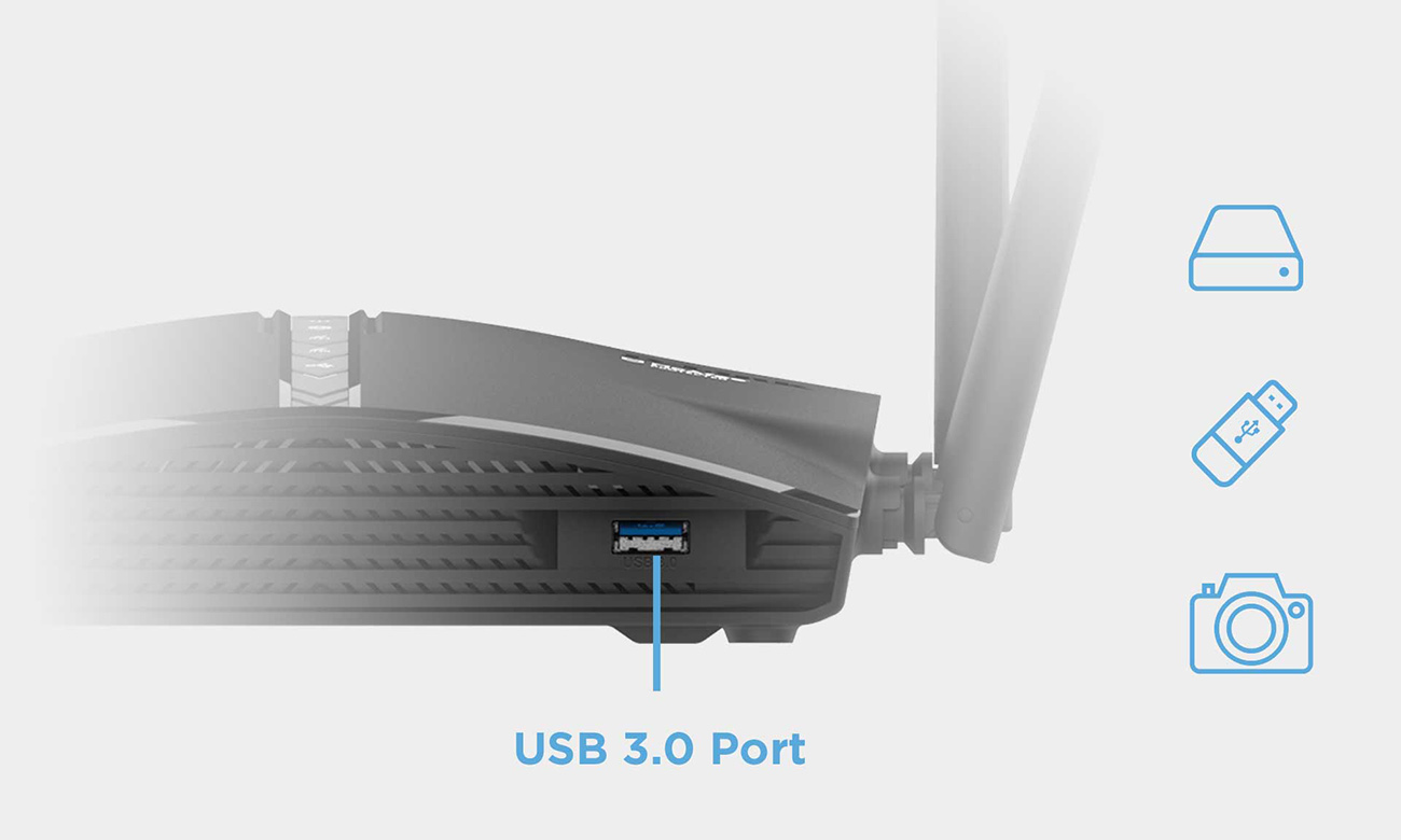 مزود بـ 4 هوائيات خارجية مع تقنية SmartBeam لتوجيه الإشارة نحو الأجهزة وتحسين نطاق الإرسال والاستقبال.