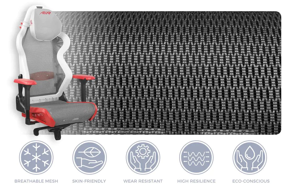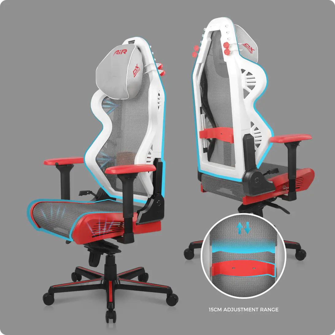 من أحدث كراسي DXRacer المصنوعة من القماش بتصميم مريح ويسمح بمرور الهواء عبر نسيج القماش .. الشي اللي يخليه بارد ومريح دائماً.