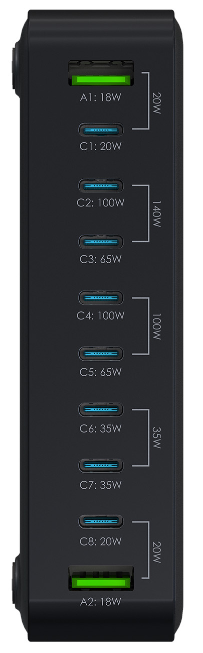 يعطيك 10 مداخل .. عبارة عن 8 مداخل تايب سي .. و مدخلين USB.